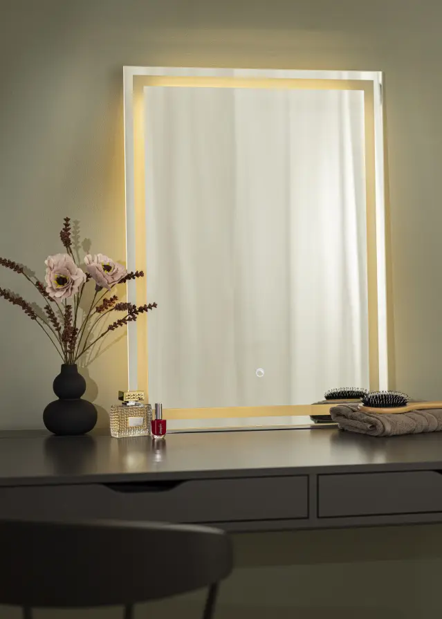 Muitos dos espelhos de casa de banho da nossa gama possuem iluminação LED integrada, que se ilumina atrás do espelho e proporciona uma luz uniforme. É perfeito quando você deseja obter uma luz ideal e uniforme em seu rosto enquanto se prepara para o dia. Os espelhos grandes do banheiro geralmente devem ser conectados a uma tomada elétrica, enquanto os modelos pequenos e portáteis funcionam com baterias. Muitos modelos maiores também oferecem iluminação regulável, para que você possa ajustar a luz completamente às suas necessidades.