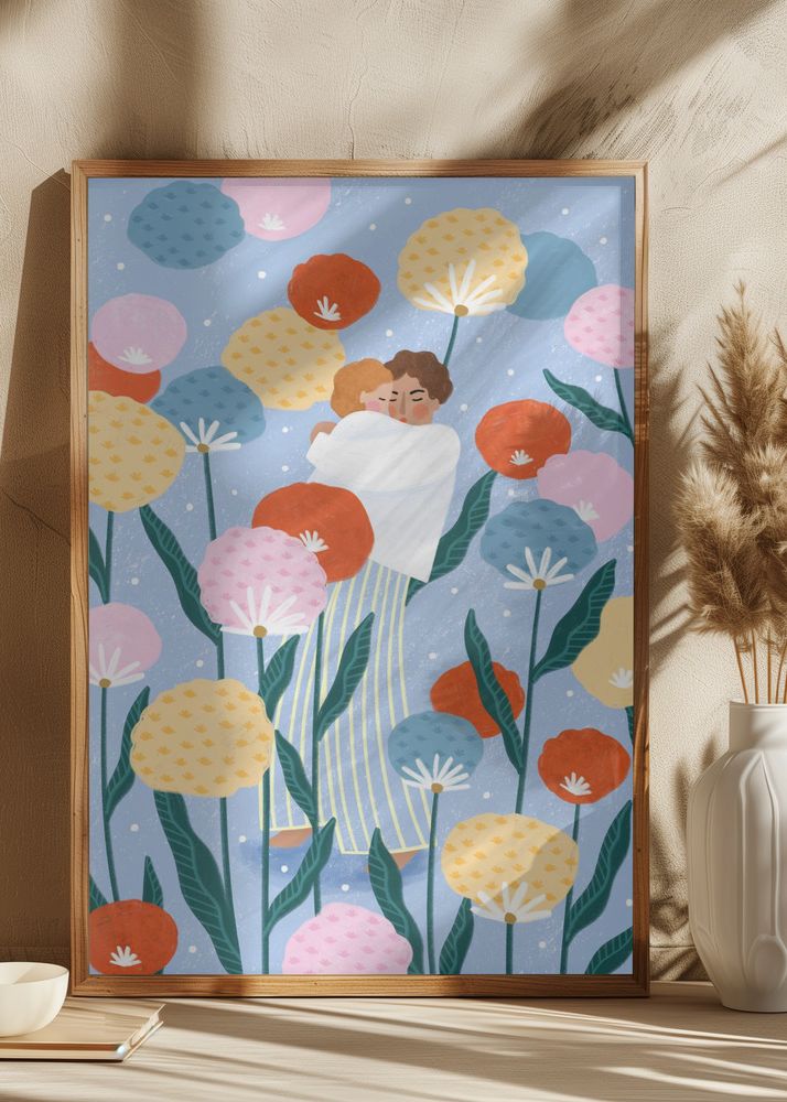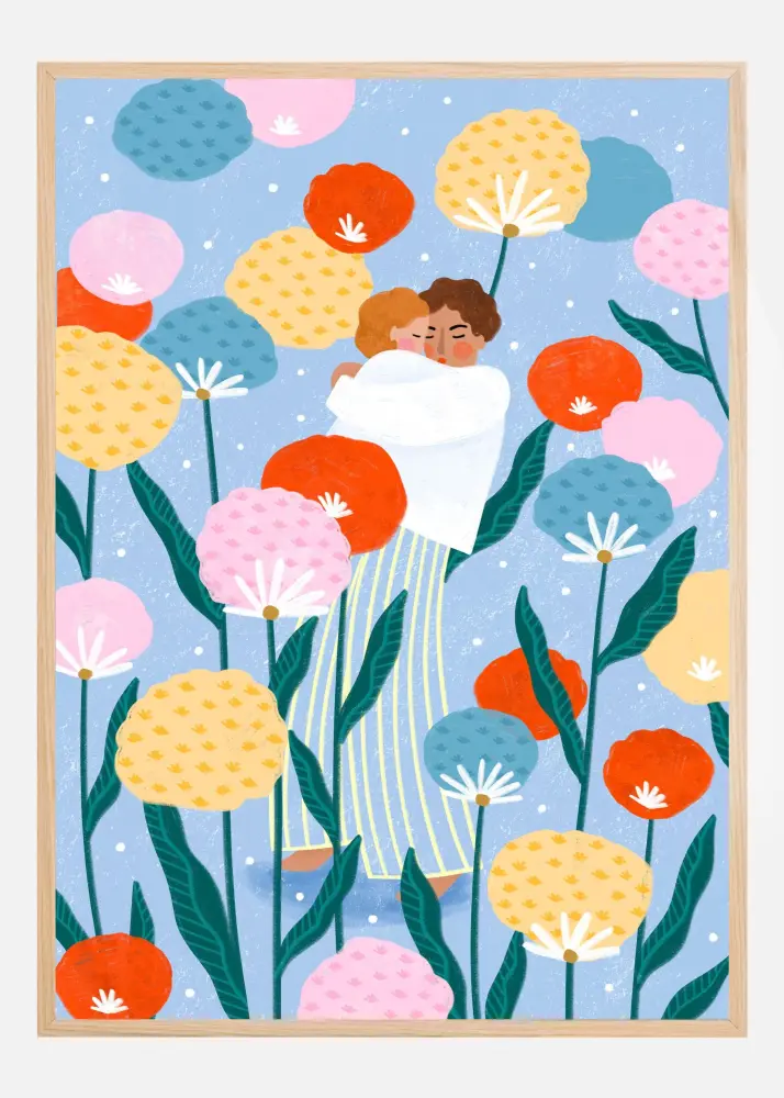 Mother and Child Amongst Flowers Póster (21x29.7 cm (A4))
