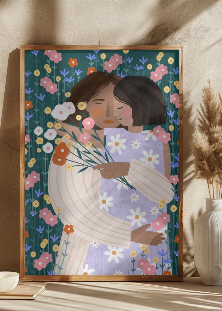 Mother and Daughter in wildflower garden Póster (21x29.7 cm (A4))