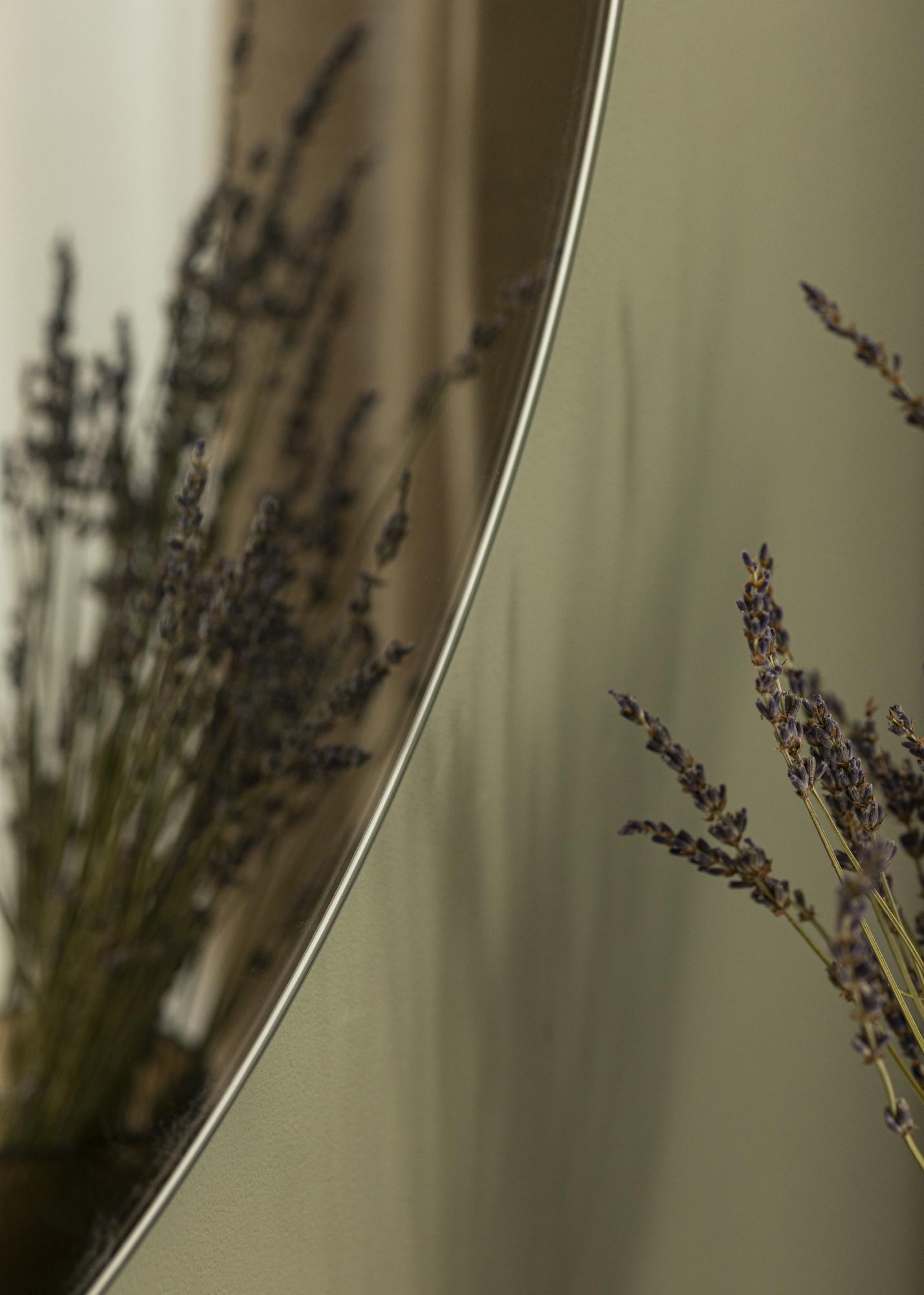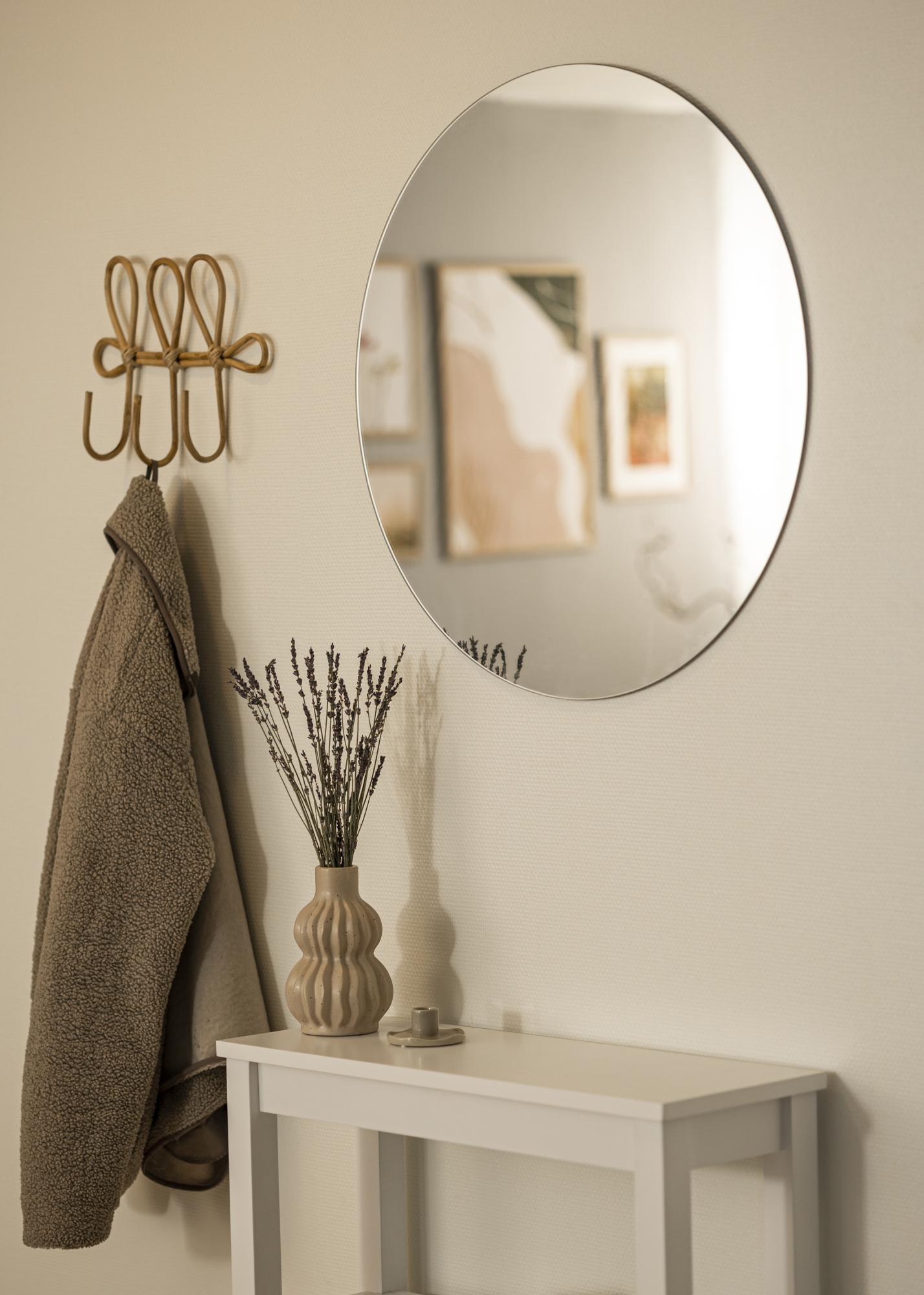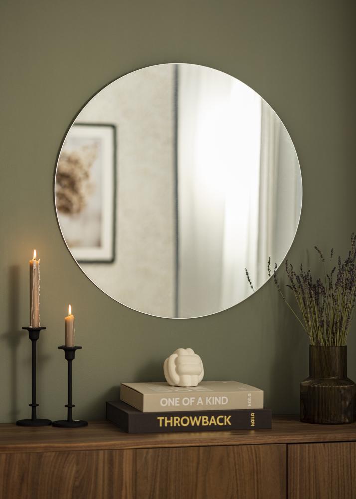 Espelho redondo de 70 cm de diâmetro que faz parte de uma série de espelhos redondos. O espelho é extremamente fino e elegante e combina com todos os tipos de quartos e estilos de decoração.