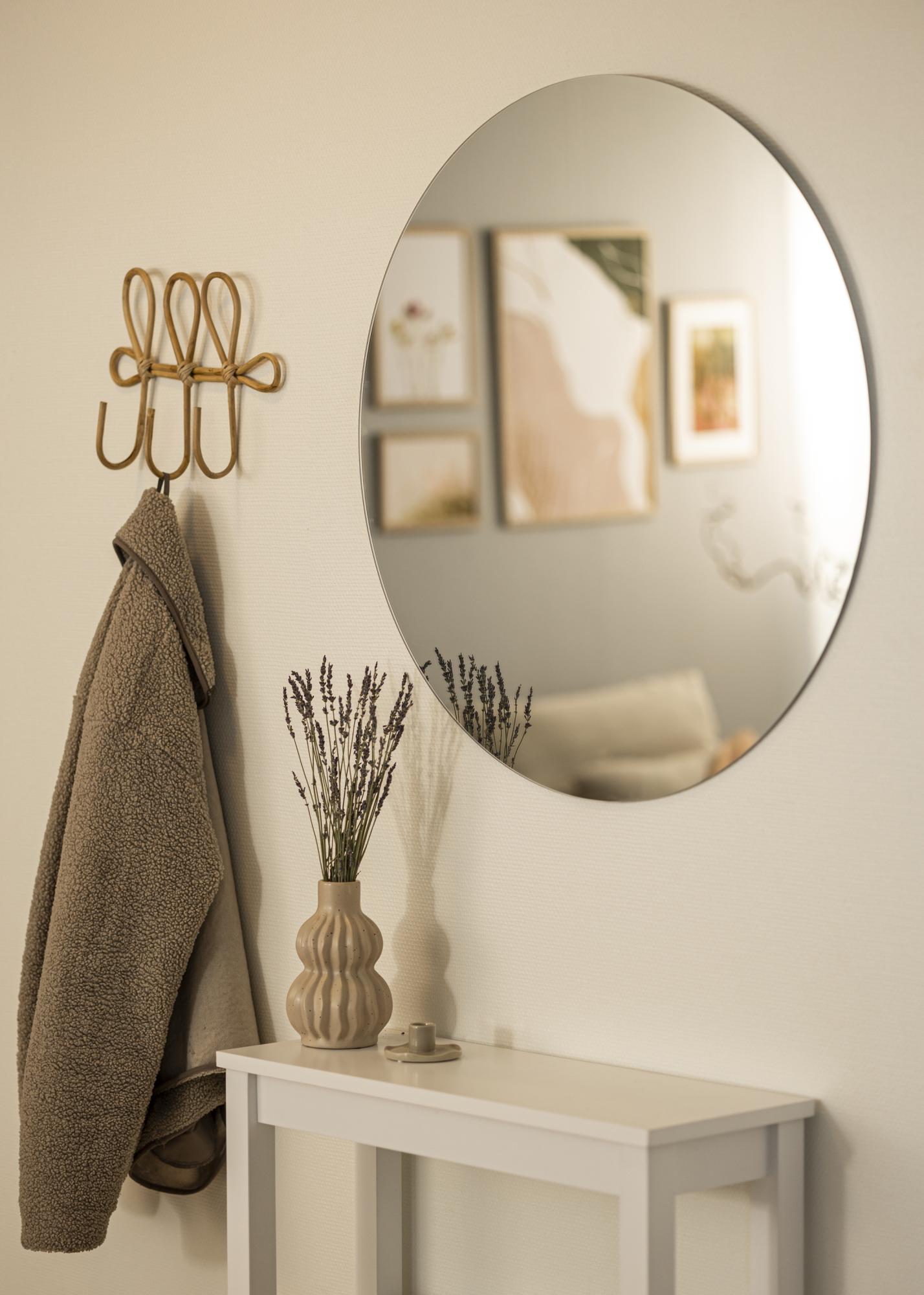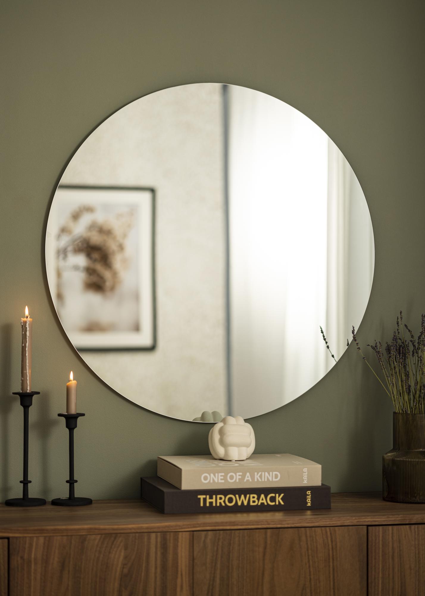 Espelho redondo de 80 cm de diâmetro que faz parte de uma série de espelhos redondos. Disponível em 9 tamanhos diferentes para que encontre o tamanho perfeito para o seu quarto. O espelho é extremamente fino e elegante, adequado para todos os tipos de quartos e estilos de decoração.