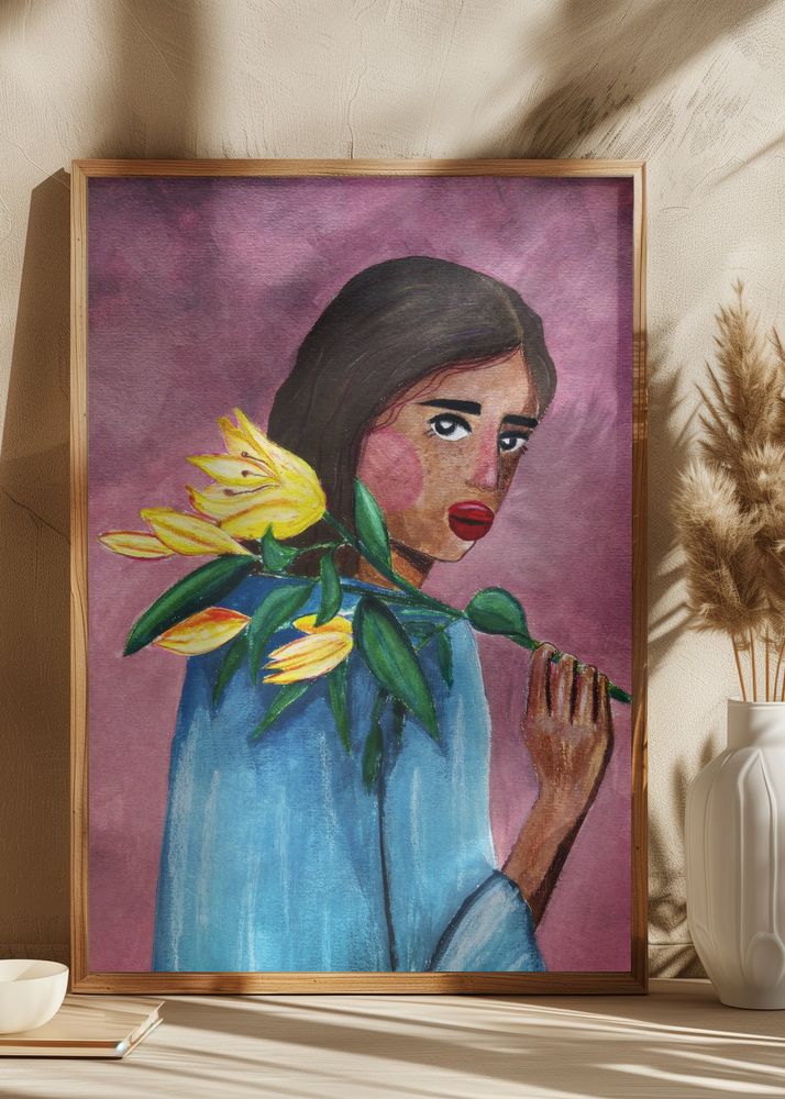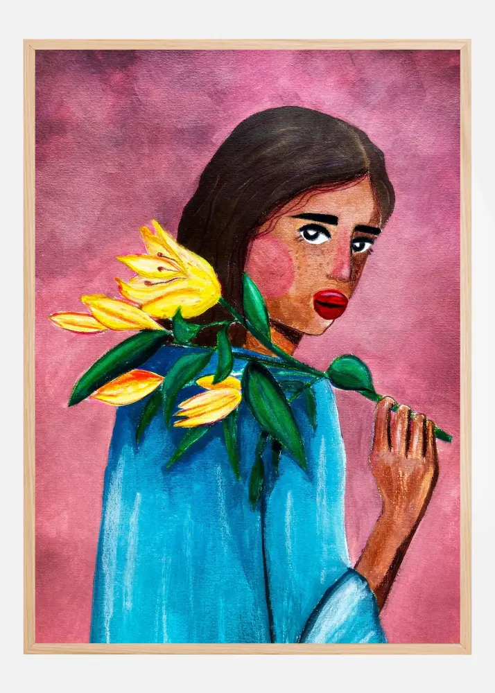 Woman With Lily Póster (100x140 cm)
