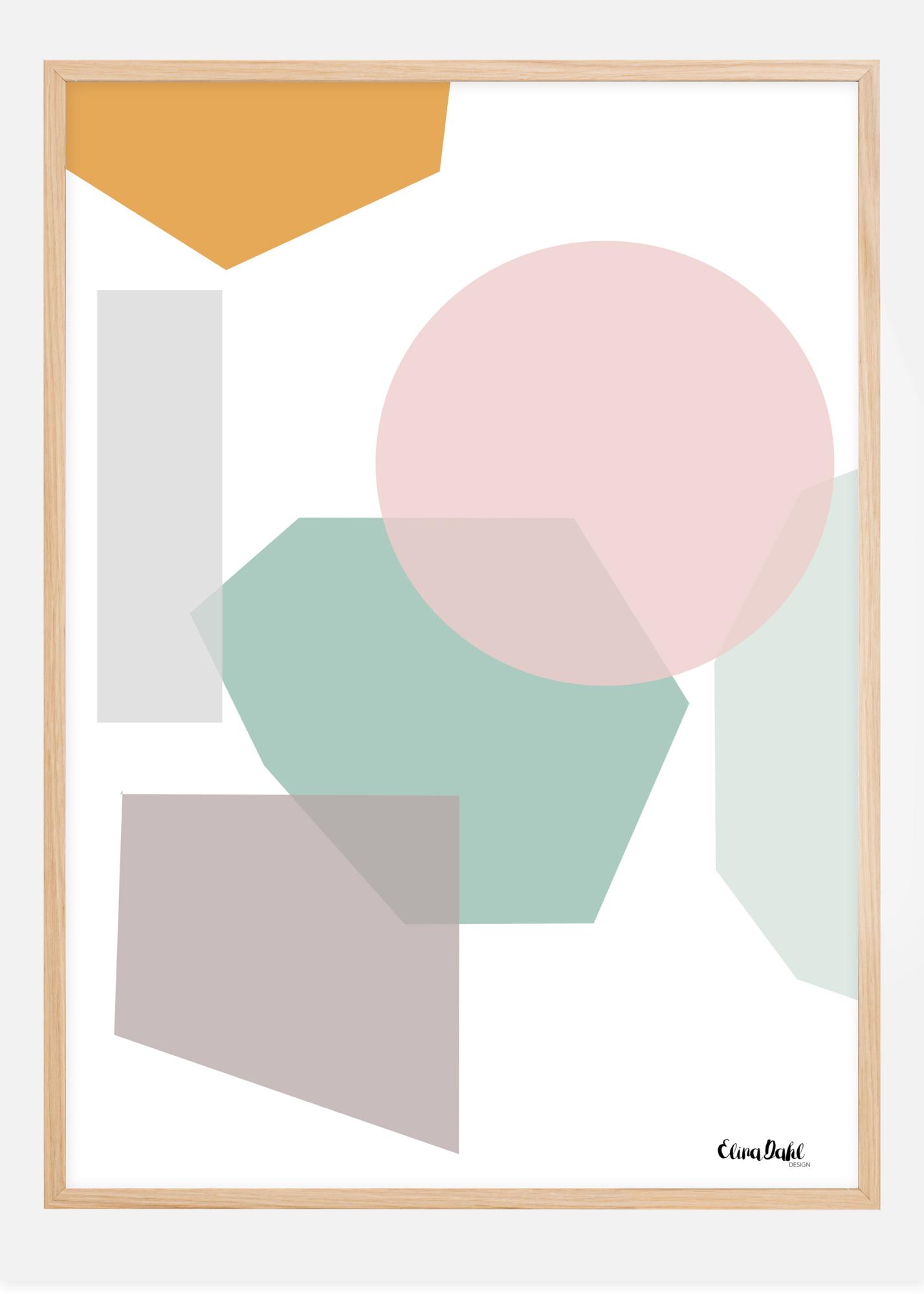 Um póster abstrato com formas gráficas em cores pastel maravilhosas, criado pela designer Elina Dahl. A imagem é perfeita para uma casa moderna ou talvez para o quarto das crianças? Complemente com mais dos nossos adoráveis pósteres Elina Dahl para criar uma galeria de parede maior no mesmo tema.