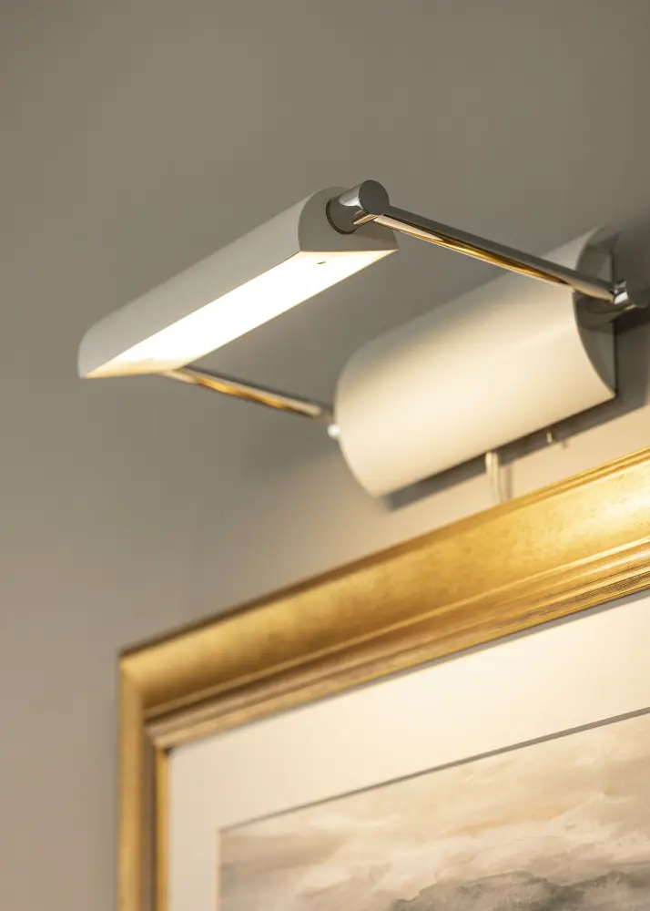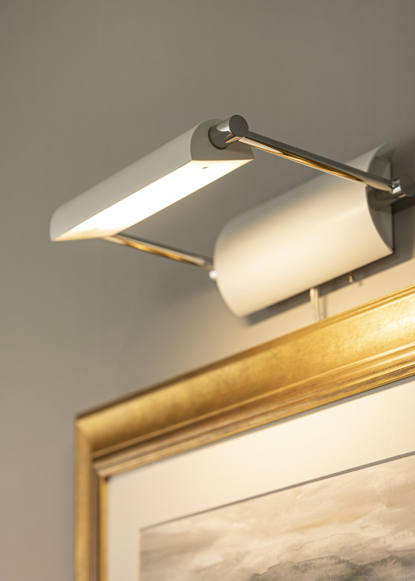 Iluminação de quadros desenhada na Suécia com iluminação LED para maior durabilidade. A iluminação possui uma boa luminosidade de 6W, equivalente a 540 lúmens, que proporciona aquele toque especial às telas que gosta muito e deseja exibir. A iluminação é fácil de regular para obter o ângulo de luz desejado. Adequado para todos os quadros com largura de 40-60 cm.