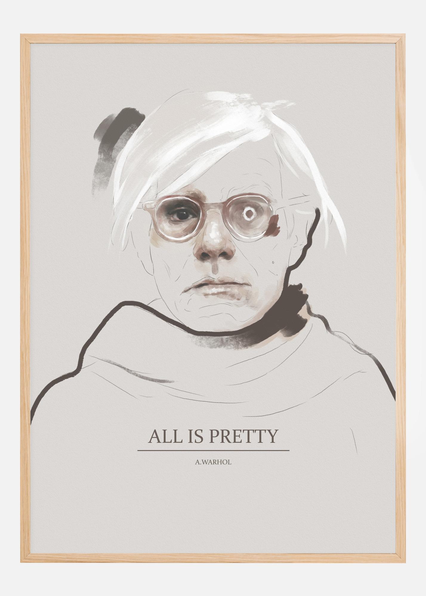 Um póster de retrato de Andy Warhol. Esta obra experimental apresenta um retrato do artista num fundo cinzento. O seu cabelo branco e um olho maníaco e olhar intenso são um bom destaque numa parede clara no estilo da arte pop. Aproveite a citação inspiradora e seja inspirado enquanto passa pelo póster em casa.