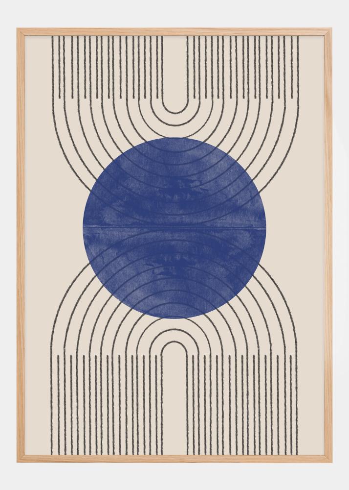 Crie uma atmosfera tranquila e pacífica no seu quarto com o nosso pôster abstrato que mistura linhas suaves e cores ousadas. O grande círculo azul no centro proporciona uma sensação tangível de serenidade e é como um portal para outro mundo, emoldurado por uma série de arcos concêntricos que criam uma sensação arquitetônica. Esta obra de arte mistura tradição com modernidade e traz um equilíbrio pacífico ao seu ambiente.