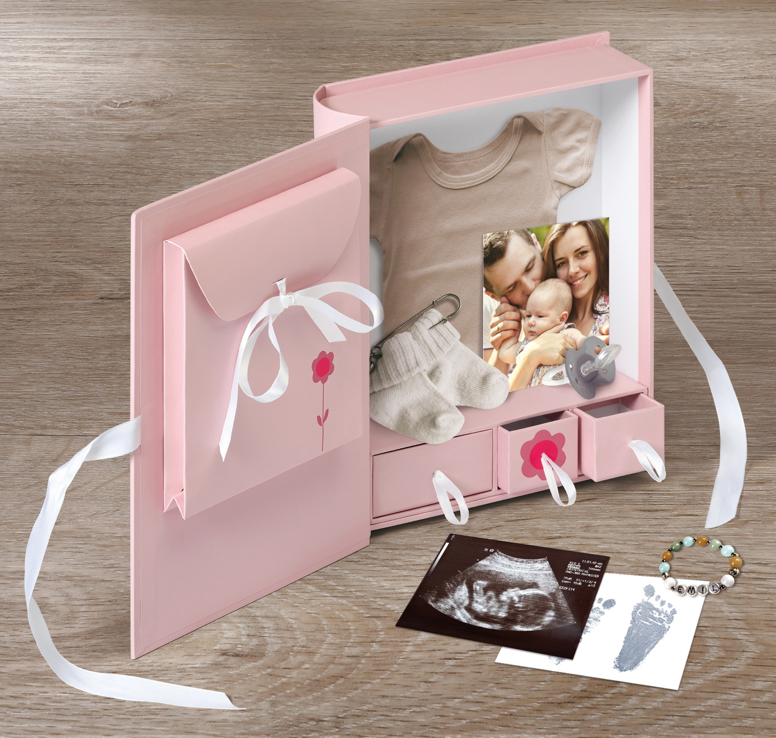 Esta caixa de memória é prática e adorável. Será um presente maravilhoso para dar aos novos pais - e também pode se presentear com esta bela caixa de armazenamento! É perfeita para guardar chupetas, roupas pequenas, cartões de felicitações, fotografias e outras lembranças do primeiro ano do bebé.