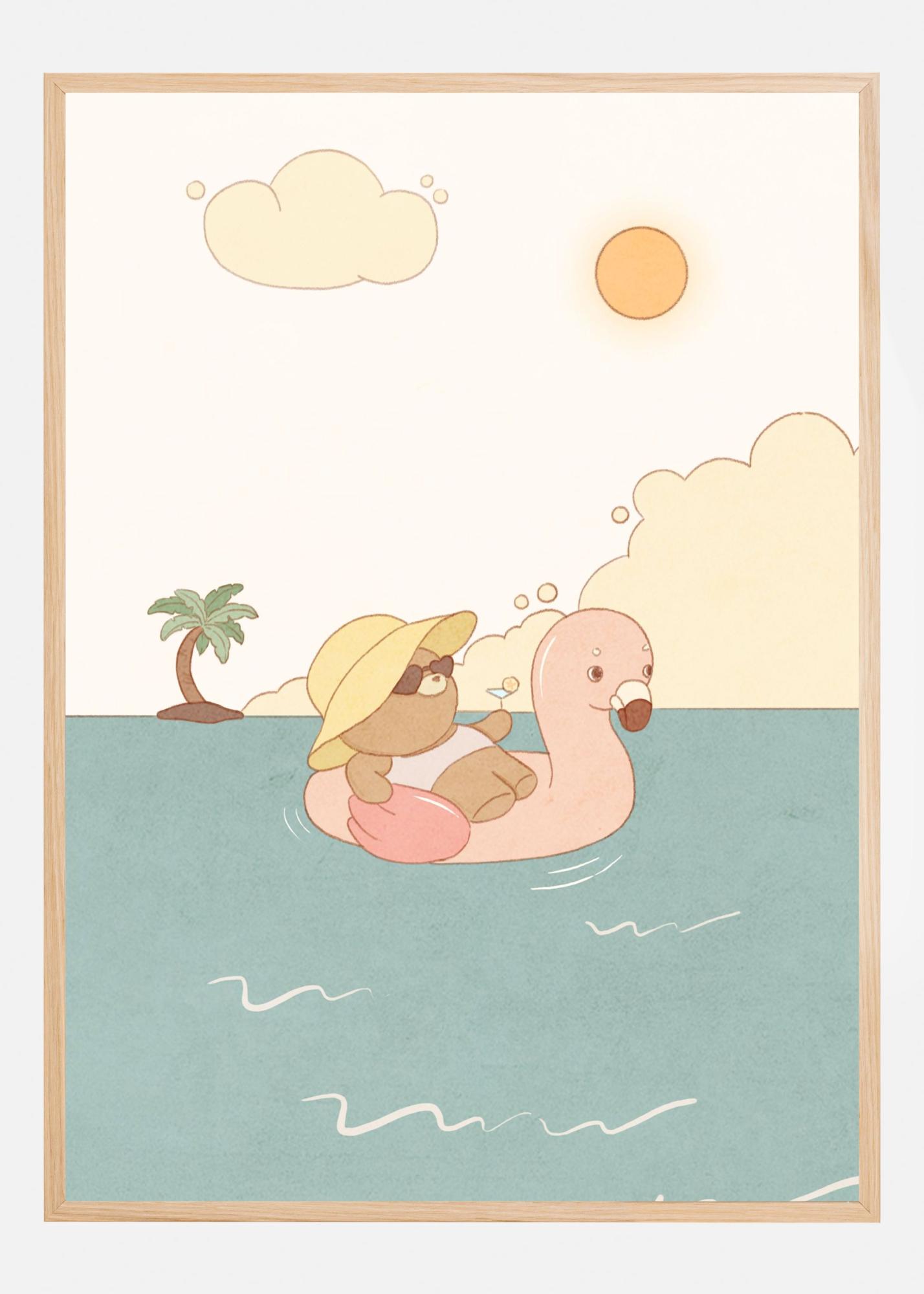 Bear On Summer Beach Póster (21x29.7 cm (A4))