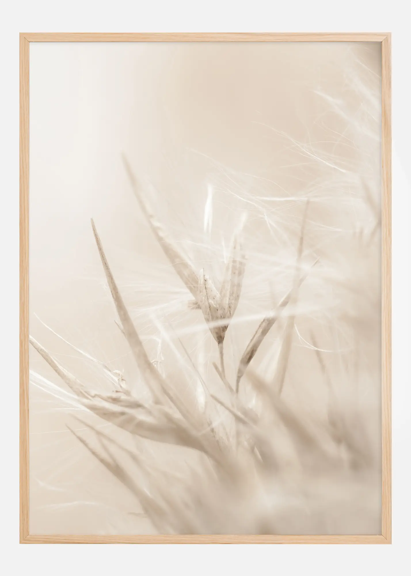 Este pôster é um estudo de fragilidade e força, um close-up de uma vida vegetal em repouso, cujos detalhes e texturas são capturados em um momento de tranquilidade. O tom de bege suave e os detalhes finos dos caules secos criam uma atmosfera onírica que é tanto relaxante quanto esteticamente atraente. Esta obra de arte captura os contrastes maravilhosos da natureza, destacando sua natureza delicada, mas ao mesmo tempo duradoura.