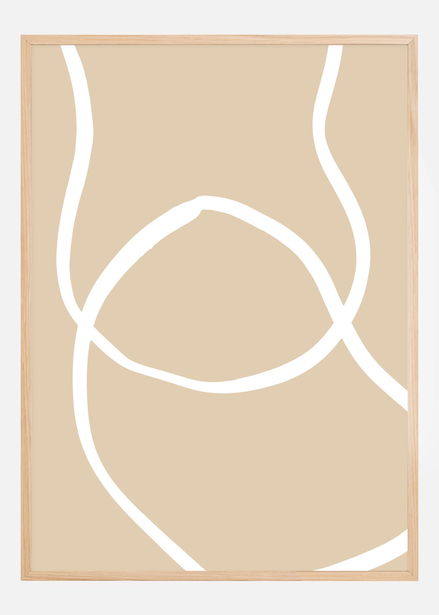 Um póster minimalista com linhas branco-creme que formam formas num fundo bege. As linhas curvas se movem pelo parágrafo, com um ponto de interseção no meio que atrai o olhar para a forma circular sobreposta. Para fazer uma declaração ousada, pode pendurar essa imagem numa parede azul-claro para realçar o bege.
