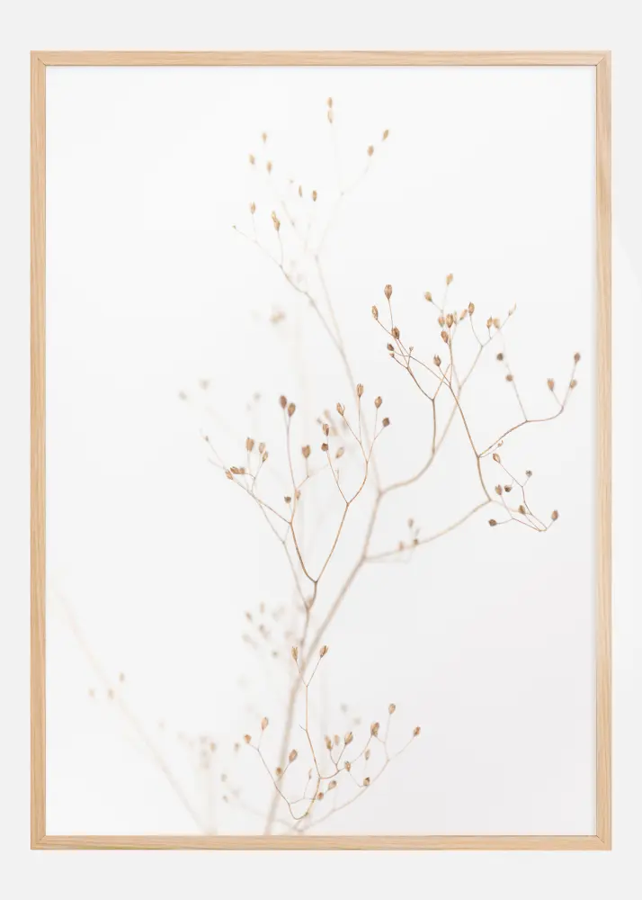 Este cartaz captura a beleza sutil de um galho com sementes secas, retratado contra um fundo calmo e neutro. As linhas delicadas e os tons discretos criam uma sensação de tranquilidade e elegância natural. Esta imagem é um lembrete atmosférico do lado sereno da natureza, onde até os elementos mais silenciosos têm sua própria beleza e força.