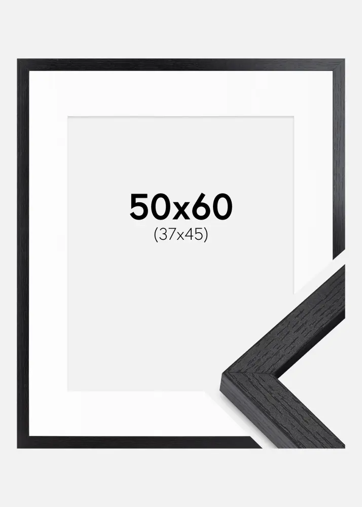 BGA Moldura de caixa Preto 50x60 cm - passe-partout Branco 38x46 cm