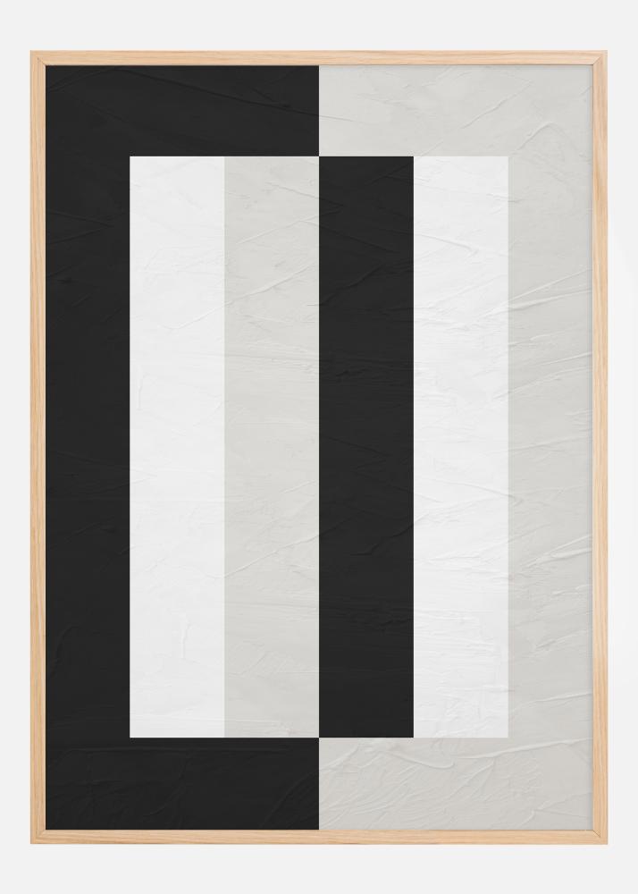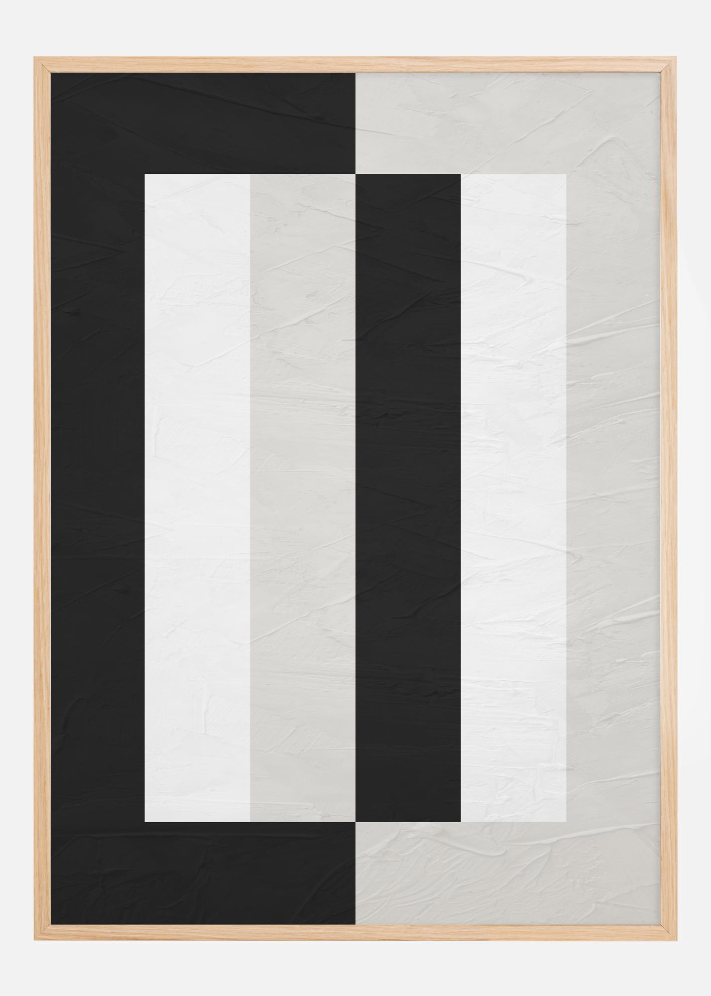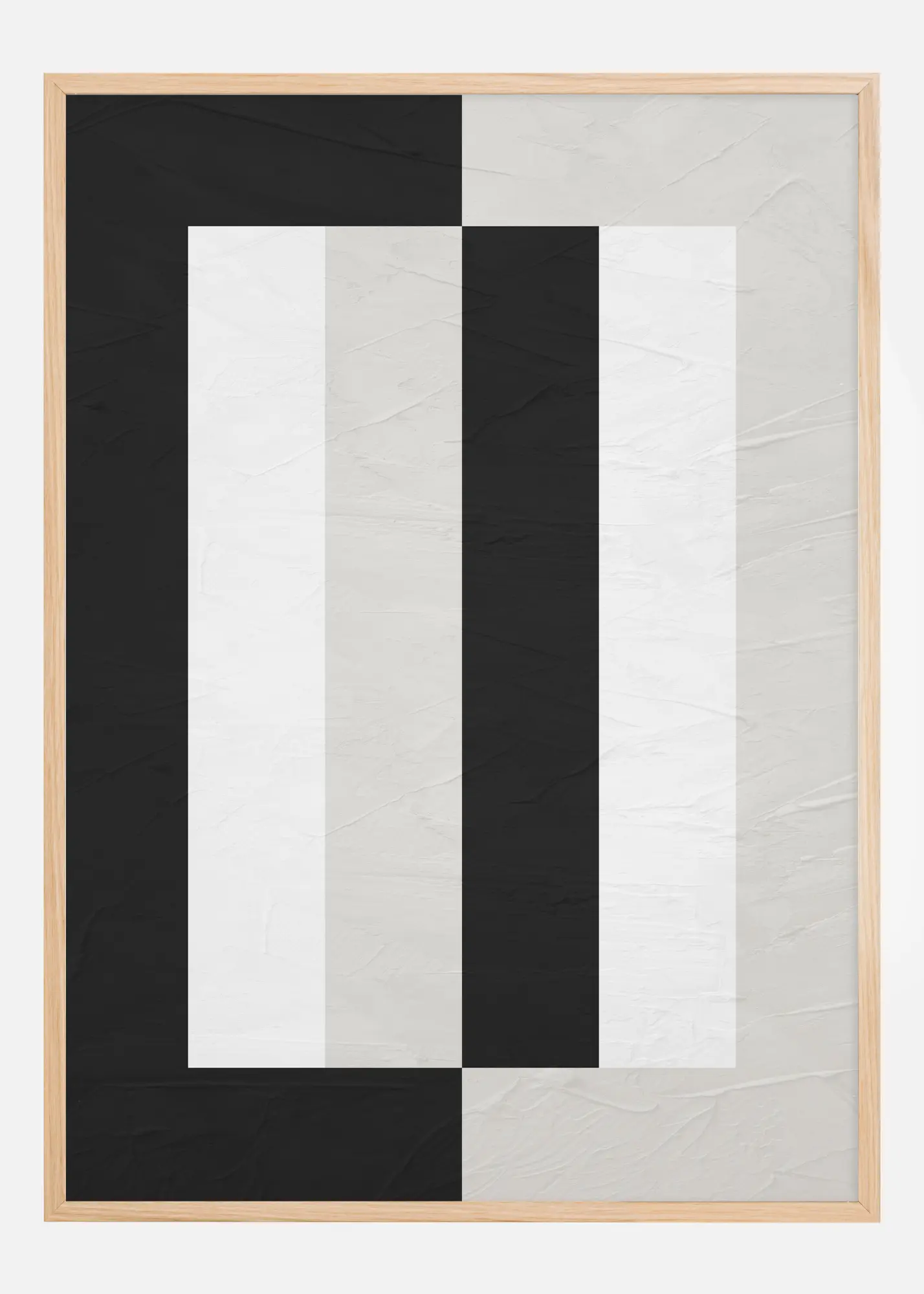 Este cartaz sofisticado apresenta uma composição ousada e gráfica que captura imediatamente a atenção do observador. A combinação contrastante de preto e branco forma uma série de linhas e blocos verticais, criando uma ilusão ótica de profundidade e movimento. Este cartaz é ideal para o decorador moderno que procura uma obra de arte marcante que transmita uma sensação de elegância e design contemporâneo. A paleta de cores restrita torna simples integrar esta imagem em diferentes quartos e ambientes.