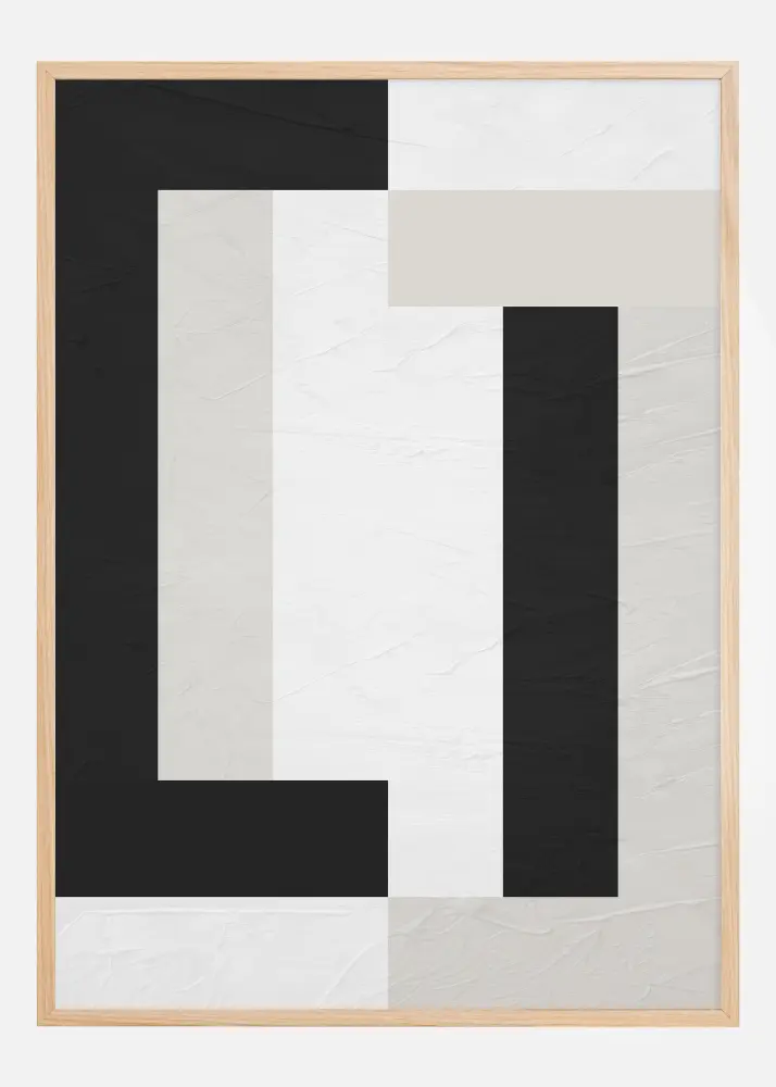 Este pôster distinto combina a simplicidade da arte moderna com um design geométrico arrojado. O jogo contrastante entre preto e branco é dividido em blocos e linhas retangulares que juntos criam uma ideia de equilíbrio e assimetria. Ideal para quem aprecia fortes expressões visuais, esta impressão se adapta perfeitamente a uma casa minimalista ou contemporânea. Oferece uma simplicidade elegante que pode se tornar o ponto focal do ambiente ou contribuir para uma composição maior e mais complexa.