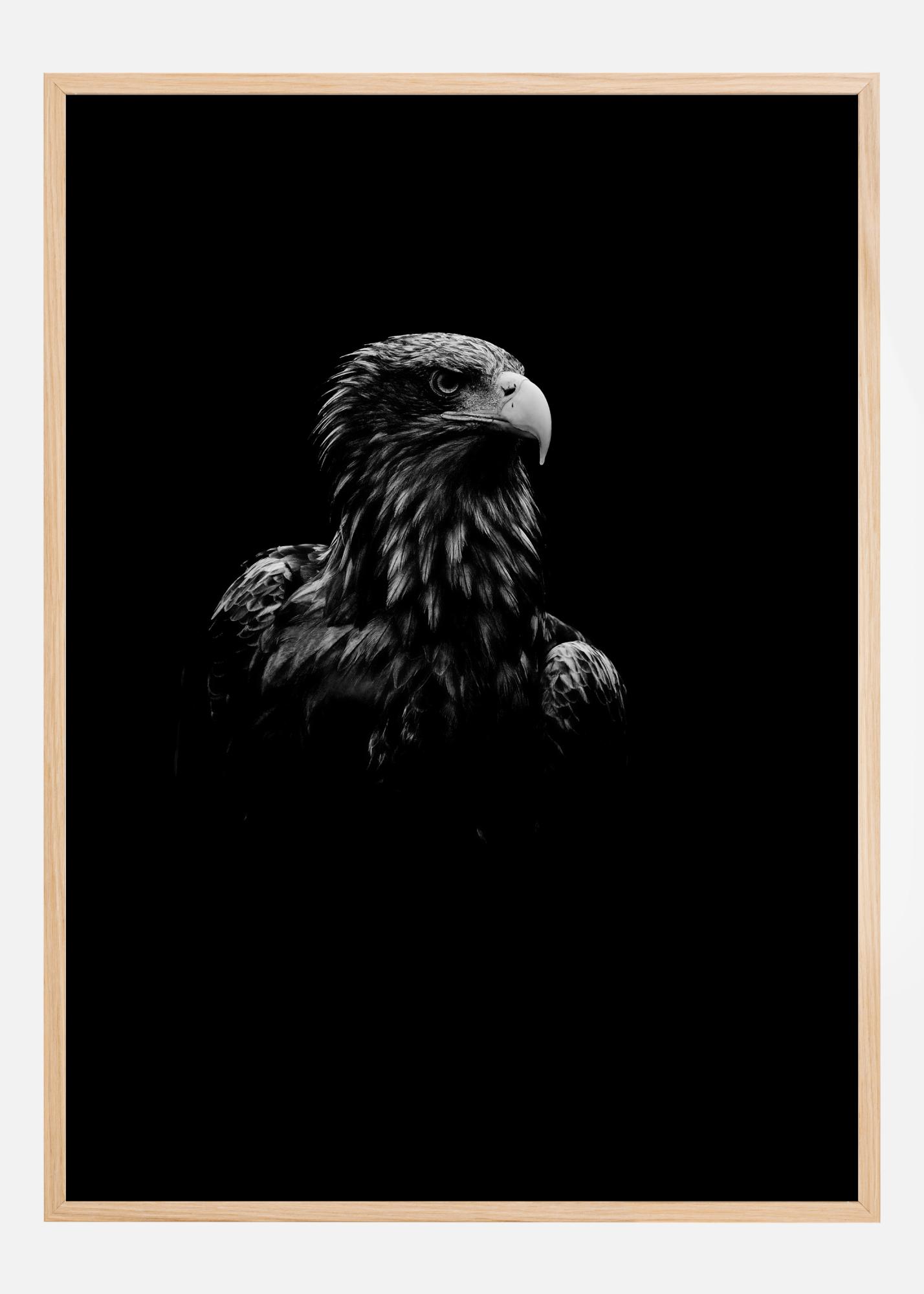Este pôster dramático apresenta uma poderosa águia, cujo perfil orgulhoso e olhar intenso são capturados contra um fundo escuro. A representação poderosa da águia em alto contraste transmite uma sensação de força e liberdade indomável. É uma imagem atemporal que nos fala sobre a dignidade e majestade que os predadores da natureza possuem.