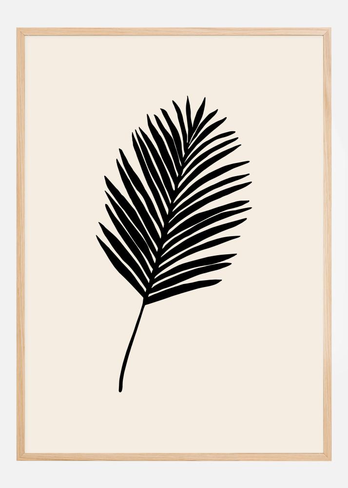 Um elegante póster com uma única folha de palmeira preta no centro, num fundo branco. Cada uma das franjas neste desenho se destaca tão claramente que pode contá-las todas. Para uma expressão simples, pode pendurar esta imagem numa parede colorida para um efeito forte, mas não avassalador.