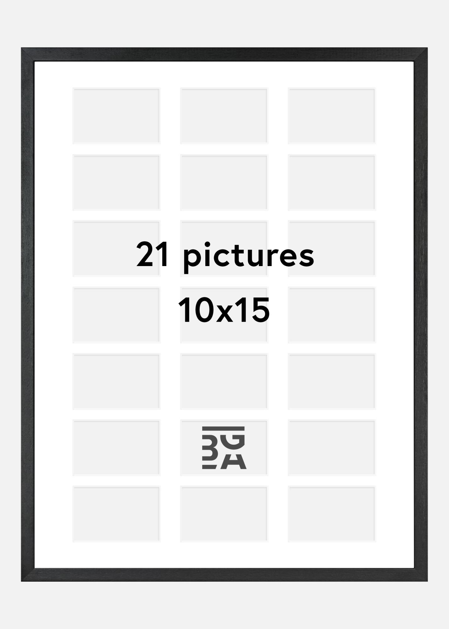 Black Wood com um passe-partout para 21 fotos é perfeito para fotos das crianças, do animal de estimação ou talvez fotos da última viagem de férias. A moldura preta e elegante, combinada com o passe-partout branco, realça as cores das imagens e também fica bem em fotos em preto e branco.