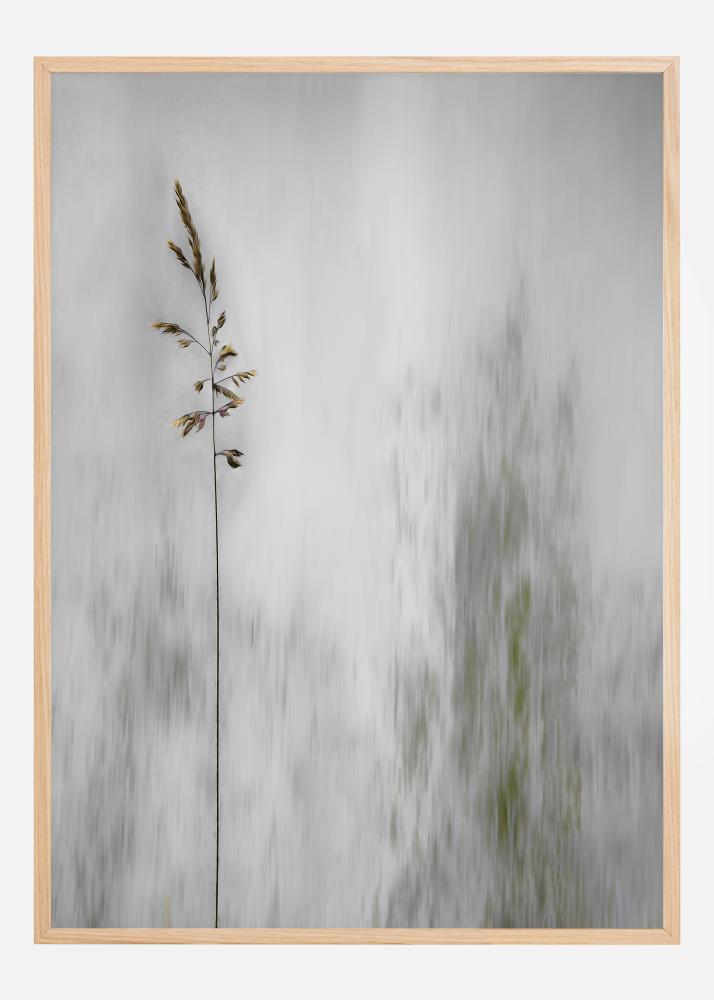 Um póster a suave com uma única espiga de grama num fundo cinzento suave. A espiga dourada se destaca claramente em um foco suave no fundo que chama a atenção. Pendure a imagem numa parede neutra em casa para um toque de magia com a ajuda desta obra simples.