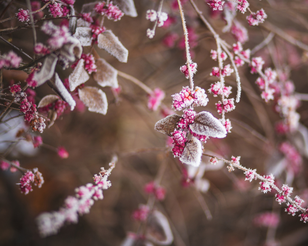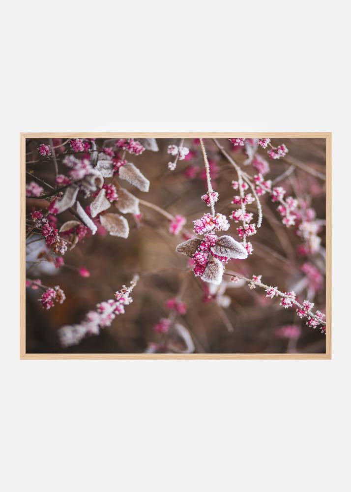 Arte fotográfica com close-up de bagas rosadas congeladas com uma profundidade de campo curta. A impressão proporciona uma sensação acolhedora e quente, com as bagas em rosa e o fundo em tons de chocolate. Num tamanho maior, com uma moldura elegante, a tela se torna um destaque na sala de estar, ou Coloque uma versão menor na coleção de quadros junto com outros pósteres nas mesmas tonalidades de cor.