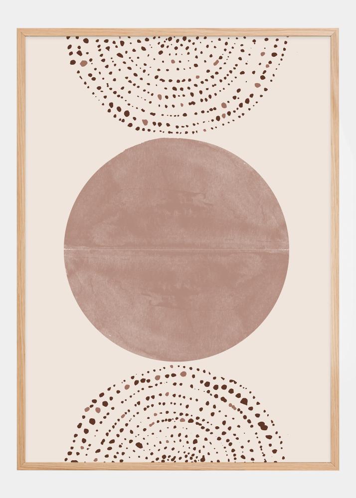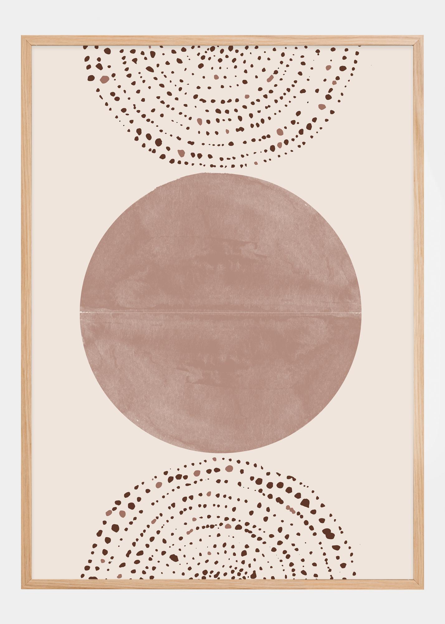 Este pôster sofisticado e calmante destaca um grande círculo macio de cor terracota como o centro de uma composição de finos pontos espalhados que formam meias-luas flutuantes acima e abaixo. Este motivo é inspirado no design boêmio e transmite uma sensação relaxada e terrosa, ao mesmo tempo que adiciona um toque moderno ao ambiente que adorna.