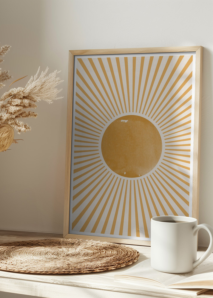 Esta impressão pode iluminar qualquer sala e adicionar um toque de boho-chic à sua decoração. É perfeita para aqueles que desejam introduzir um pouco da beleza da natureza e uma sensação de luz em sua casa. Seu símbolo universal do sol a torna uma adição bem-vinda em muitos ambientes de decoração diferentes, desde uma sala de estar até um espaço de ioga ou um quarto infantil.