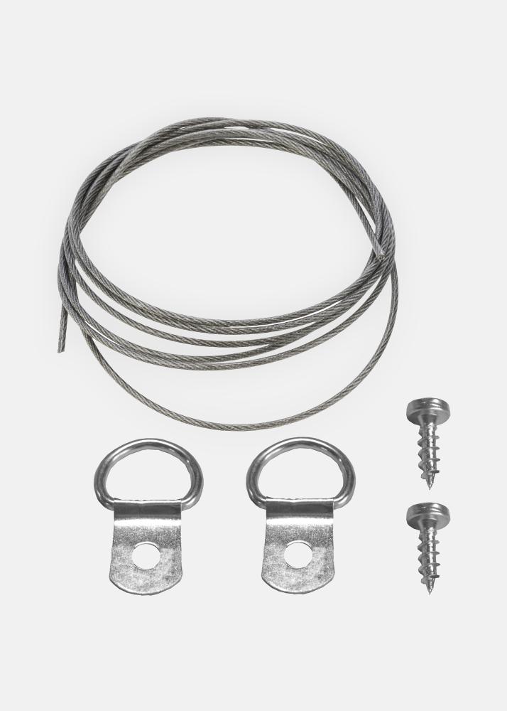 Com este kit completo, tem tudo o que precisa para montar um cabo de aço na sua tela: cabo de aço de 1 metro de comprimento, 2 parafusos e 2 argolas/ganchos. O cabo de aço é galvanizado e resistente, mas tem apenas 0,7 mm de espessura, o que o torna fácil de trabalhar, pois pode ser dobrado e torcido conforme desejado.
