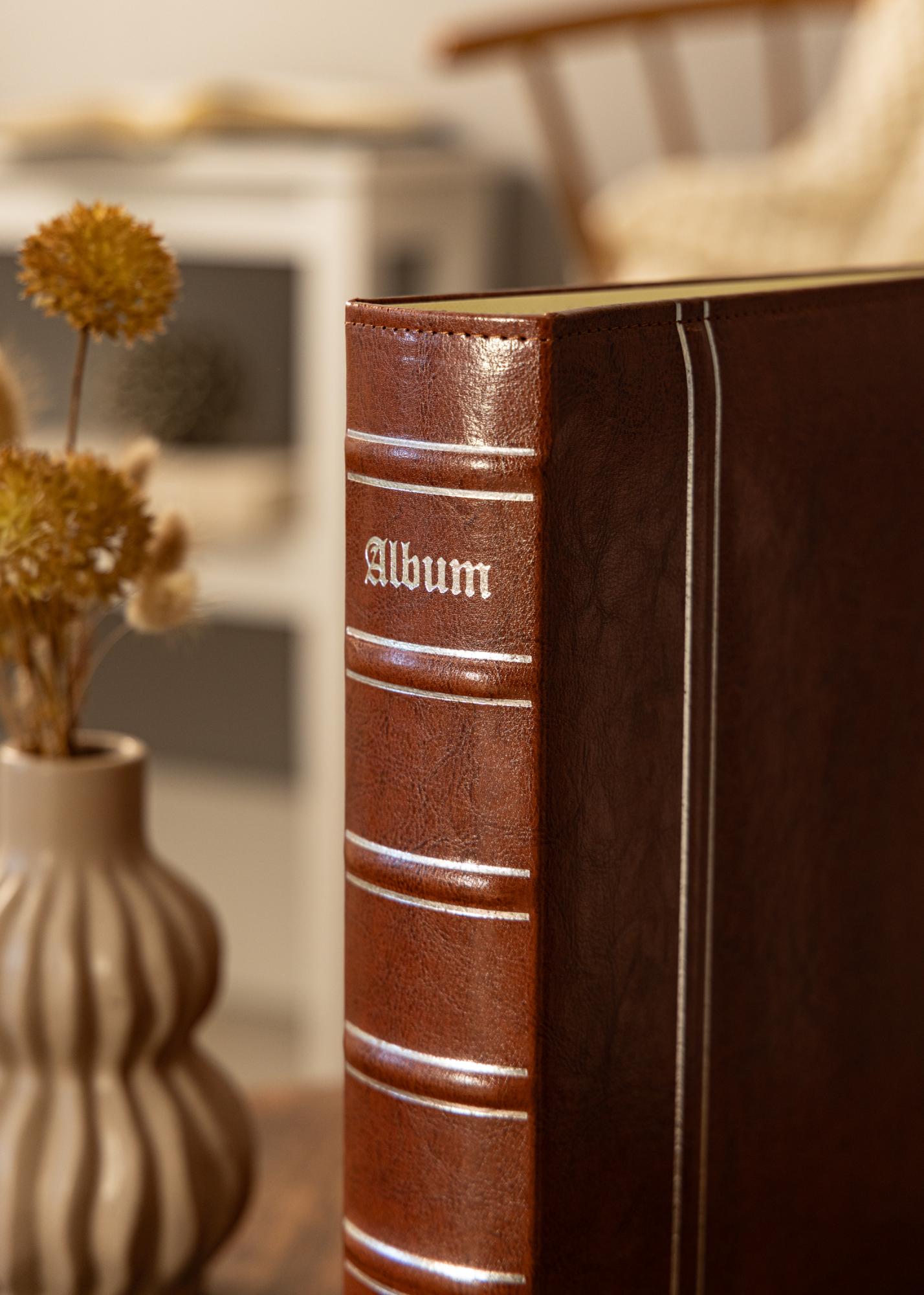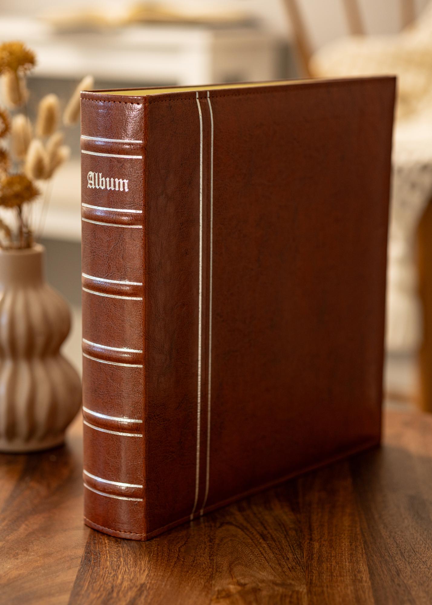 Chesterfield Gigant Ringpärm é um álbum elegante e espaçoso de design clássico, perfeito para coletar e preservar suas memórias mais valiosas. A capa marrom possui uma superfície de couro sintético elegante com detalhes em relevo e linhas prateadas que proporcionam uma sensação atemporal e sofisticada.