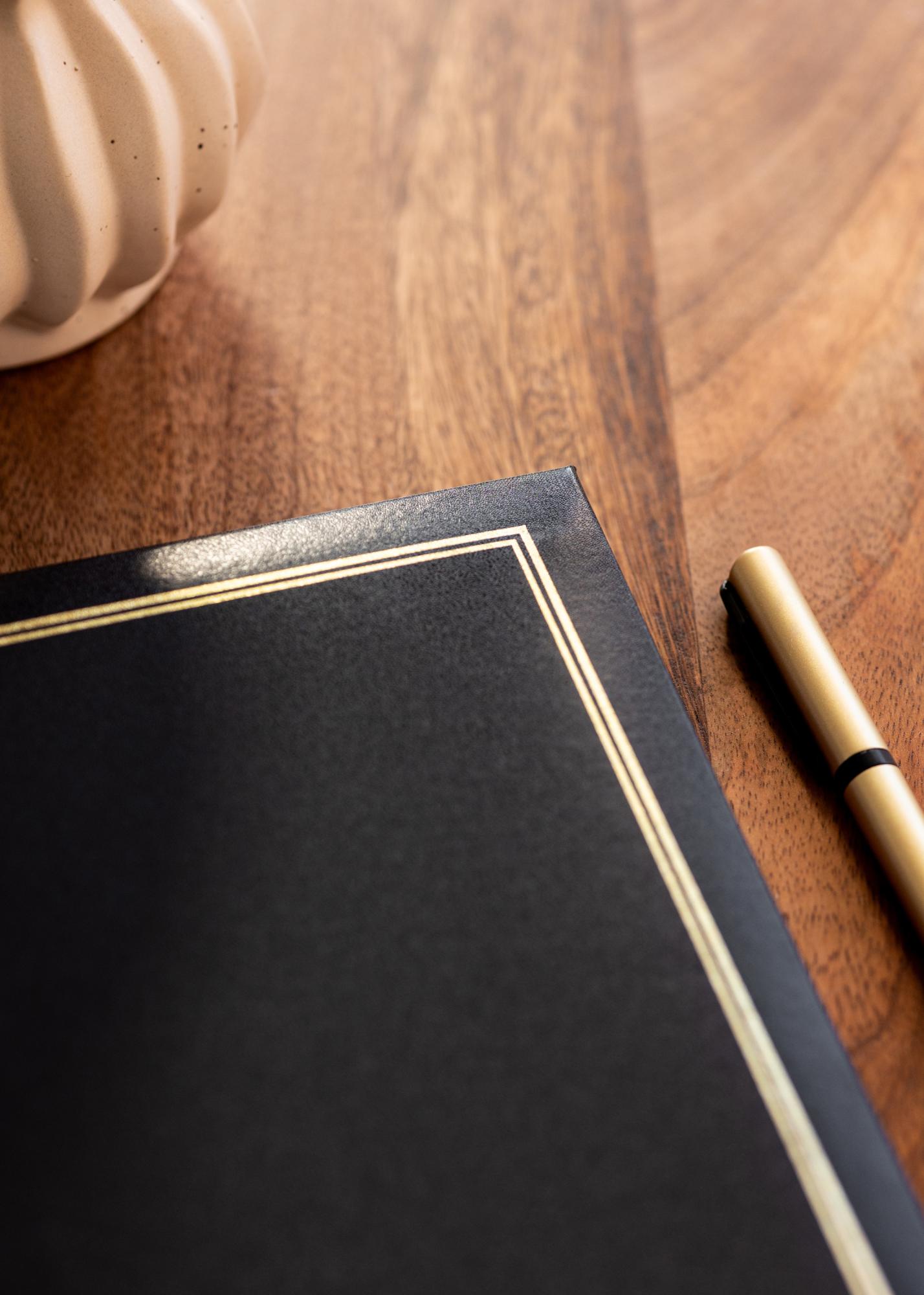 Classico Album Preto é a escolha perfeita para quem deseja criar um álbum de fotos pessoal e elegante. Com suas capas elegantes em preto e dourado, o álbum oferece uma sensação atemporal que se adapta a todas as ocasiões. O álbum mede 32x34 cm e contém 100 páginas brancas, o que corresponde a 50 folhas, onde você pode colar suas fotos favoritas.