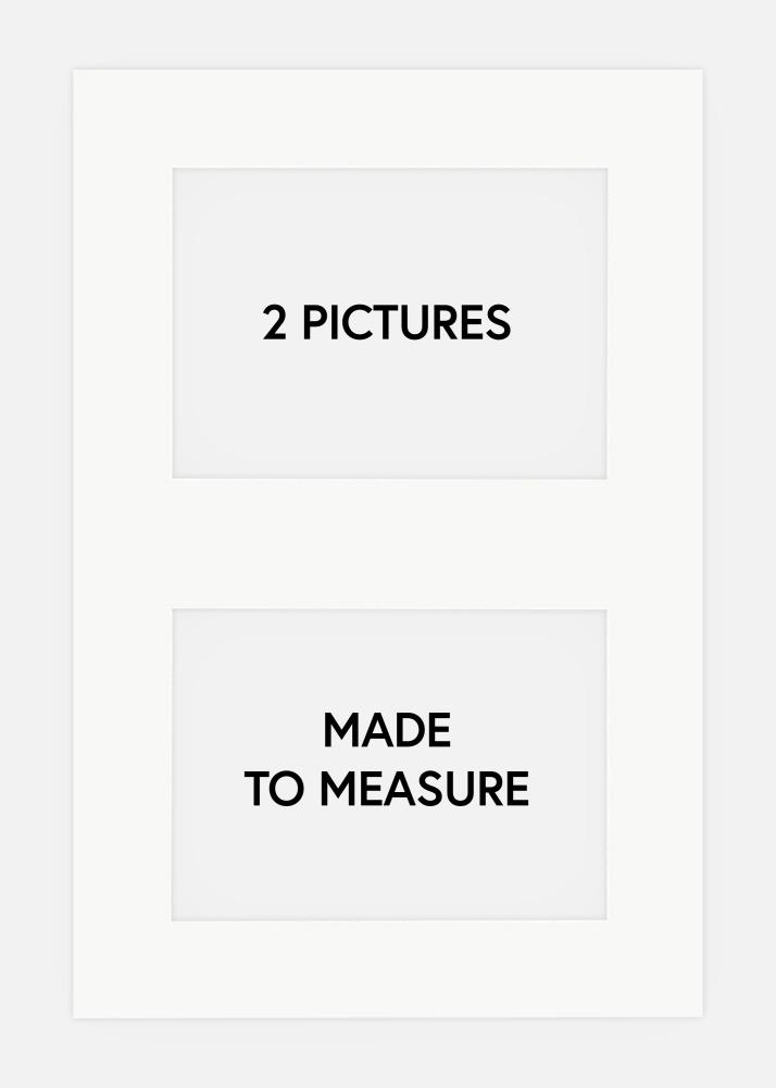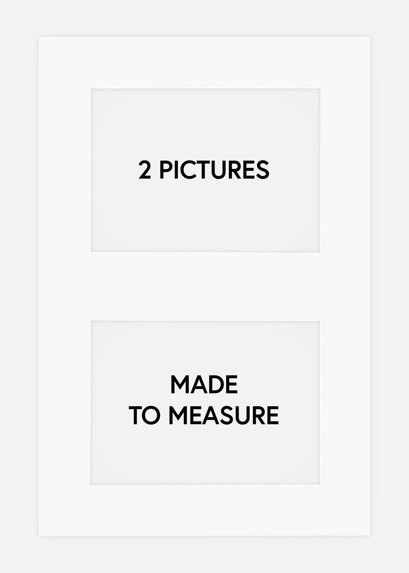Aqui pode encomendar facilmente passe-partout de colagem com espaço para 2 fotos. Para fazer o pedido, deve indicar as dimensões externas do passe-partout (que devem ser as mesmas dimensões do quadro que vai usar) e, em seguida, indicar as dimensões internas desejadas, que devem ser sempre 1 cm menor do que as imagens que vai usar. Você só pode fazer o pedido aqui se tiver duas imagens do mesmo tamanho. Se deseja passe-partout de colagem mais avançados, deve entrar em contacto com nosso serviço de atendimento ao cliente para fazer seu pedido.