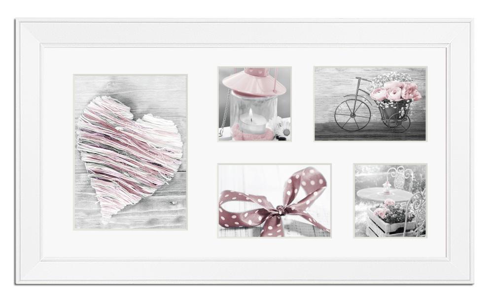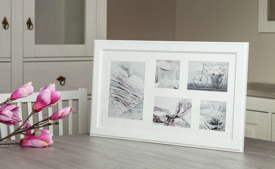 Crie belas colagens das suas memórias favoritas para uma atmosfera aconchegante e acolhedora. Esta elegante moldura de colagem é toda branca, o que a torna bonita em combinação com qualquer cor. A moldura de foto tem detalhes elegantes e um passe-partout branco que juntos proporcionam uma sensação luxuosa. Preencha-a com fotos, cartões postais, impressões ou flores prensadas!