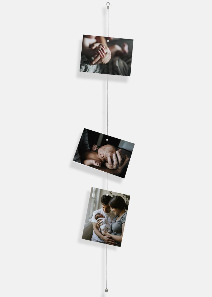 Fotorep em metal com comprimento de 150 cm, onde prende as suas fotos com 10 ímanes de fotos fortes que acompanham. Perfeito quando quer ter uma maneira diferente de mostrar suas fotos favoritas.
