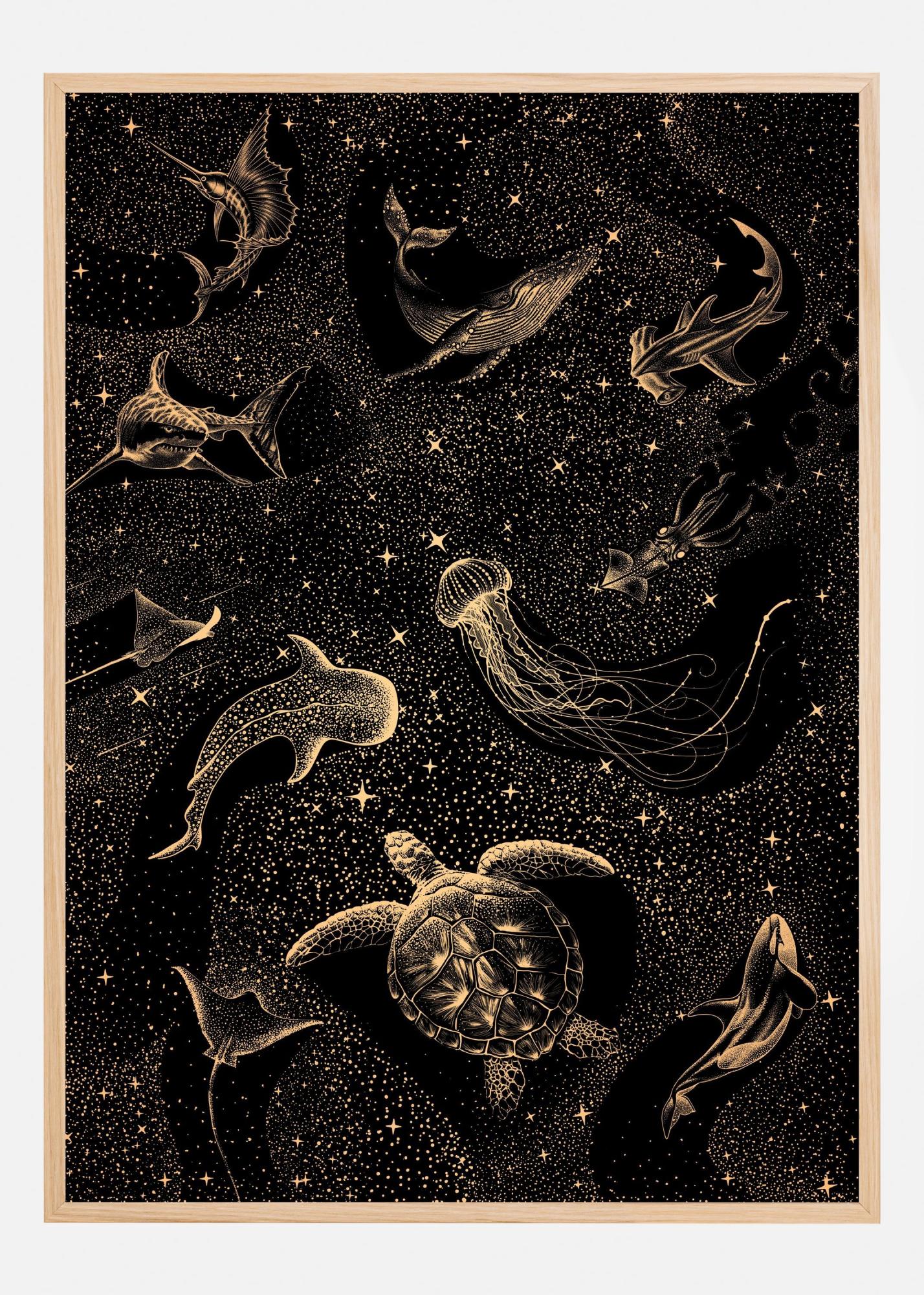 Cosmic Ocean Dark Gold Póster (21x29.7 cm (A4))