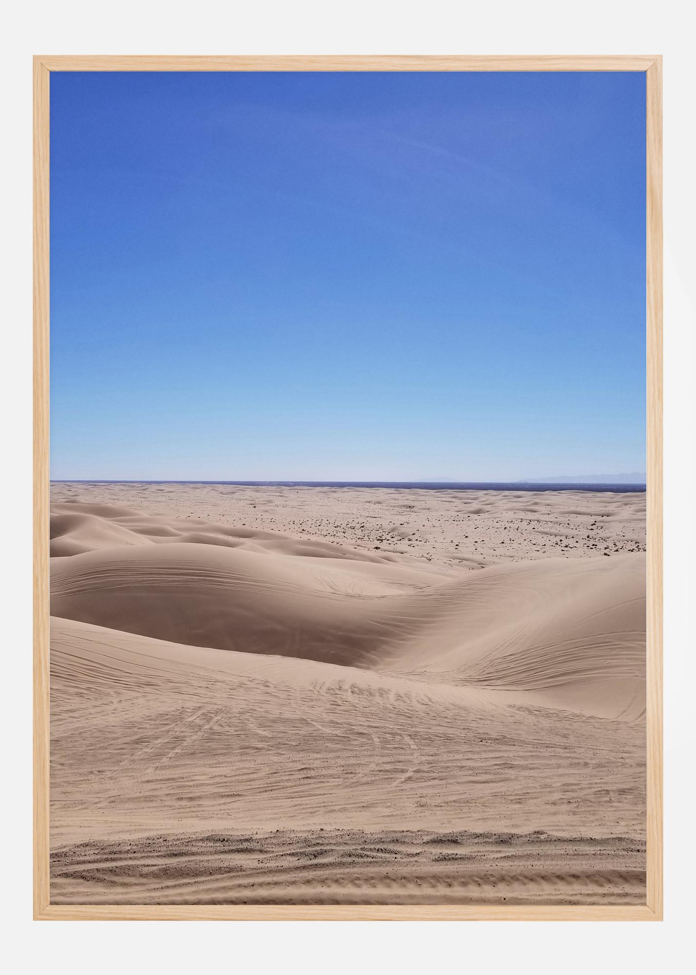 Um póster atmosférico com uma paisagem desértica. O profundo deserto vermelho destaca as dunas de areia ondulantes, levando o olhar através da paisagem. O céu suavemente azul e os borrifos rosados ??nebulosos dão uma sensação de manhã cedo. Aproveite as vastas extensões da natureza quando tiver essa imagem pendurada na parede.