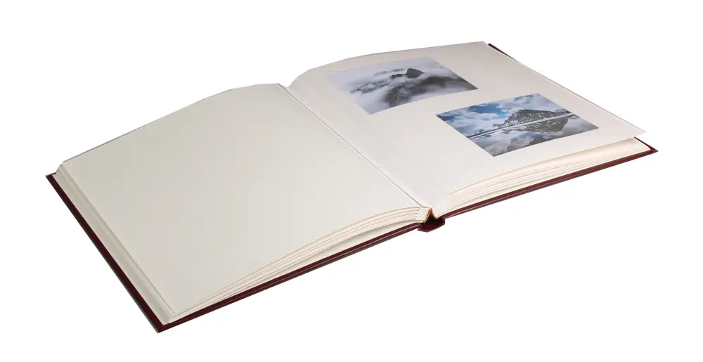 Use páginas autoadesivas quando quiser organizar suas fotos de forma rápida e fácil! Aqui temos um lindo álbum feito de couro sintético azul com elegantes linhas douradas. Tudo o que precisa fazer é levantar a folha protetora de plástico, colocar as suas fotos no adesivo e fechar cuidadosamente novamente.