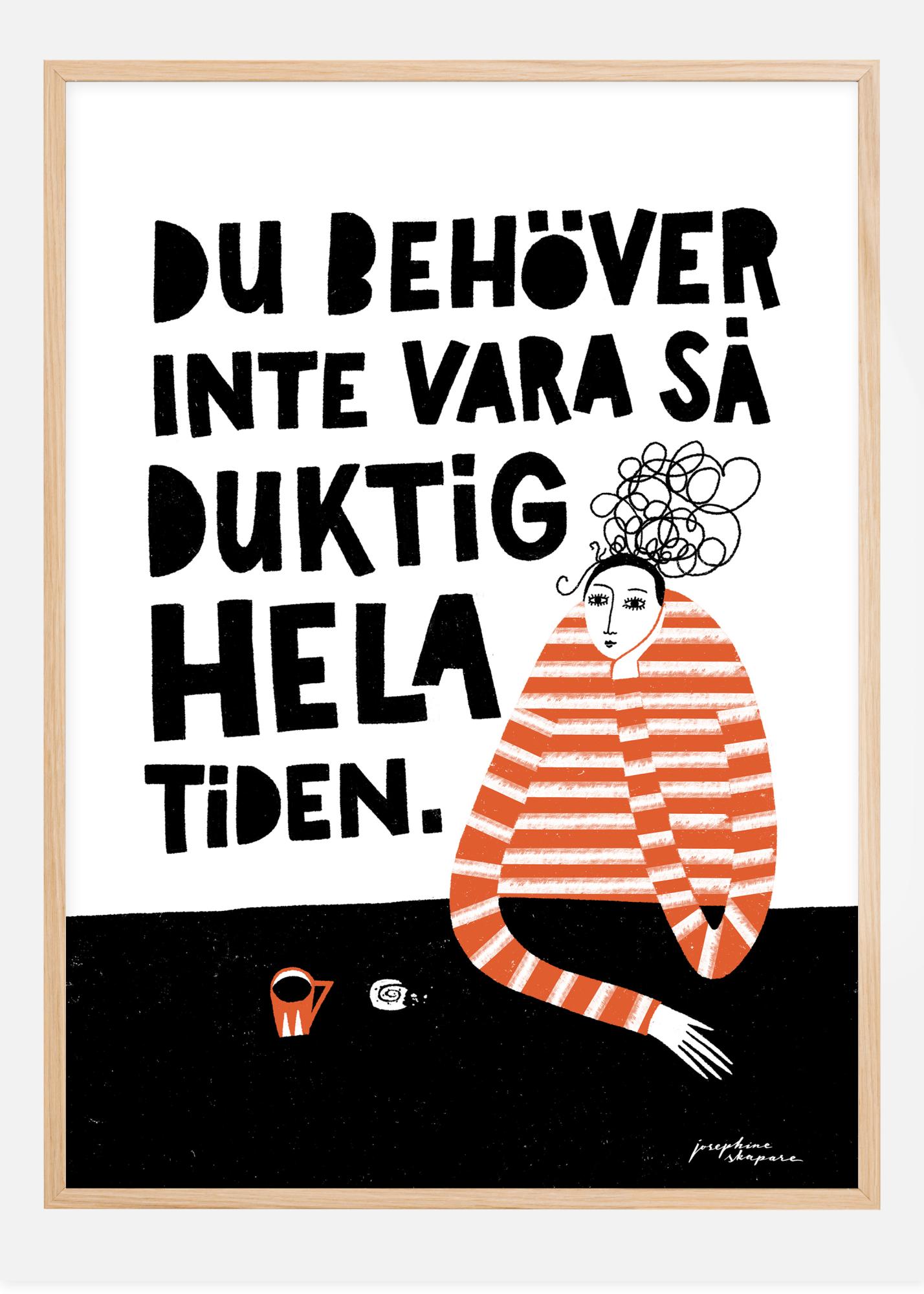 Um póster divertido e motivador com uma mulher sentada em uma mesa com o seu café. "Você não precisa ser tão bom o tempo todo" é um pensamento excelente para se viver. Seja inspirado todas as manhãs com o seu café e comece o dia de forma positiva.
