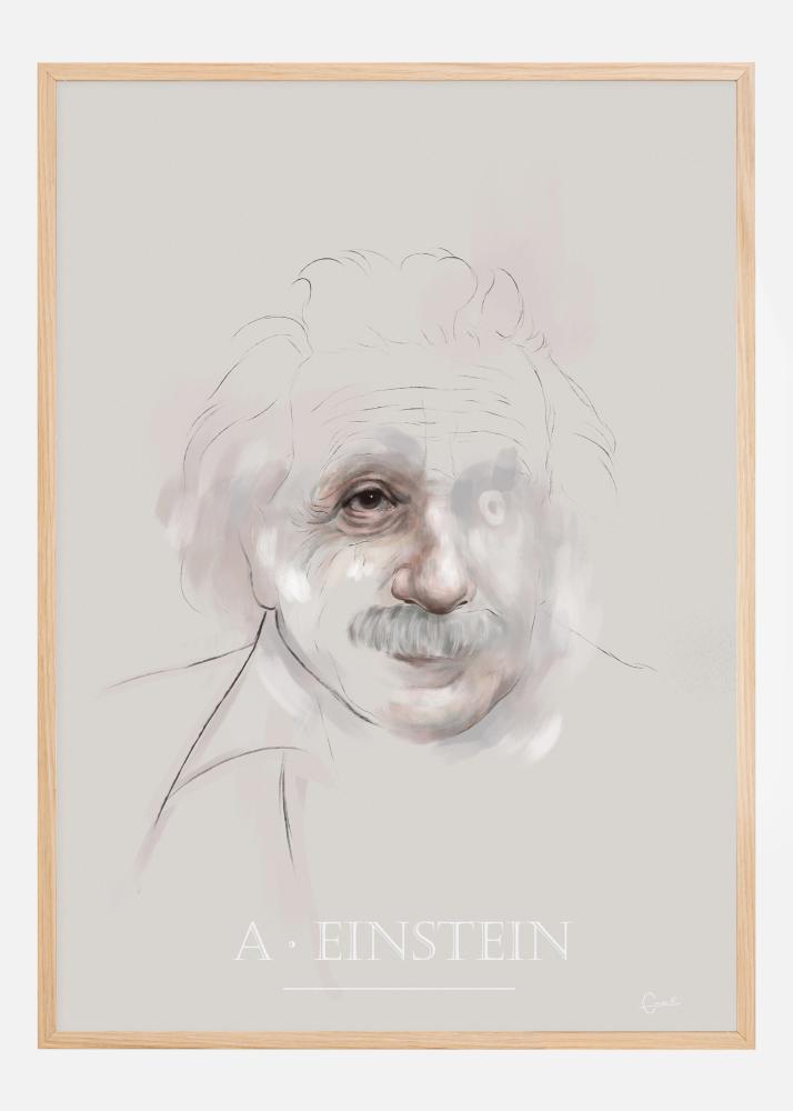 Um póster de Einstein que mostra um esboço rápido do excêntrico cientista. As linhas sutis criam parte do seu rosto, mas apenas um olho, seu nariz e bigode são detalhados e fazem com que Einstein se destaque no póster. Seja inspirado pelo seu olhar amigável enquanto ele olha para si.