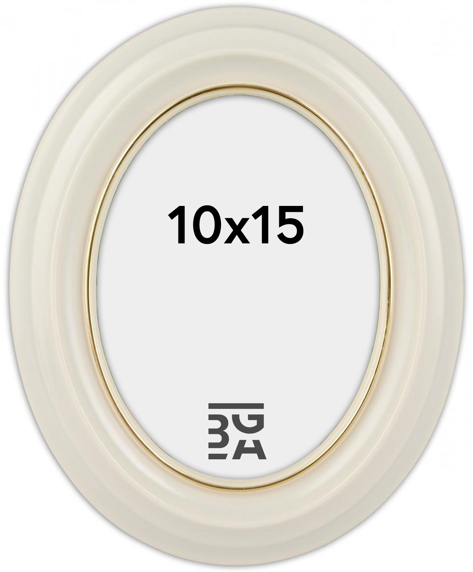 Eiri Mozart é uma bela moldura oval branca fabricada na Finlândia, o que garante uma qualidade muito alta. Mais próximo da imagem, há uma borda fina dourada, enquanto o perfil da moldura é completamente branco.