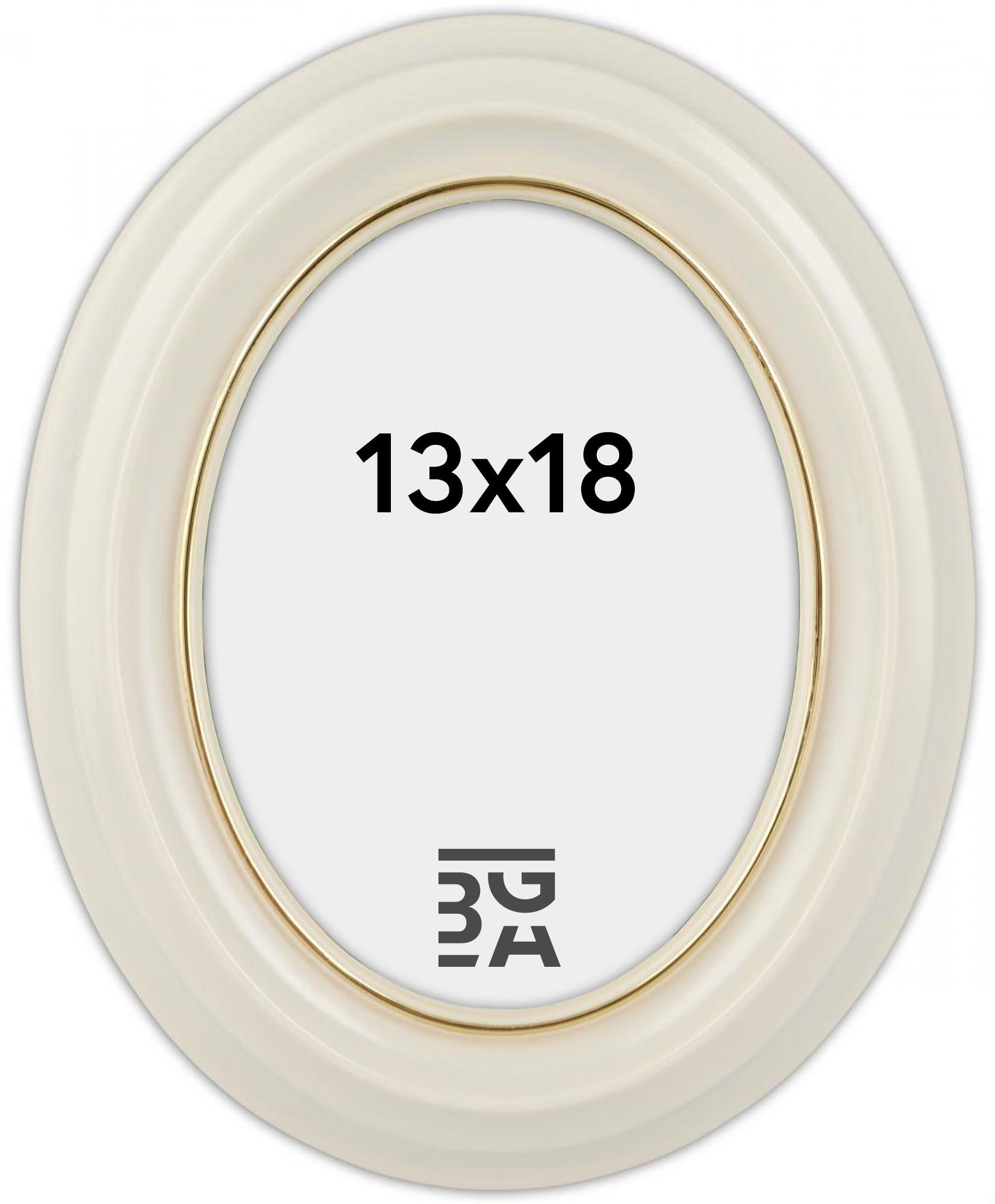 Eiri Mozart é uma bela moldura oval branca fabricada na Finlândia, o que garante uma qualidade muito alta. Mais próximo da imagem, há uma borda fina dourada, enquanto o perfil da moldura é completamente branco.