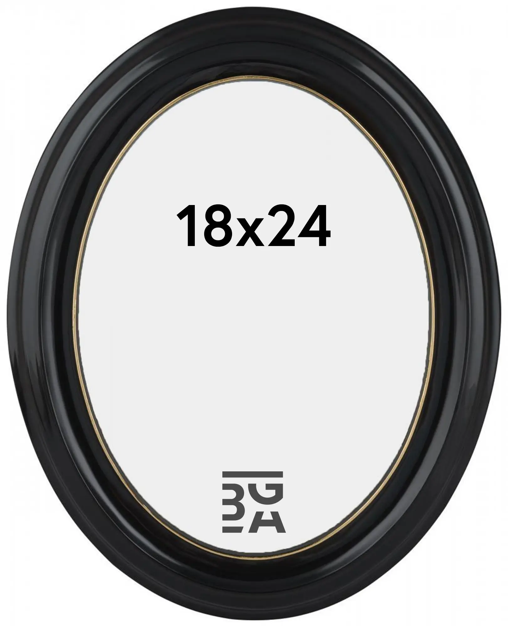 Eiri Mozart é uma bela moldura oval preta fabricada na Finlândia, o que garante alta qualidade. Além de uma fina borda dourada próxima à imagem, a moldura é completamente preta.