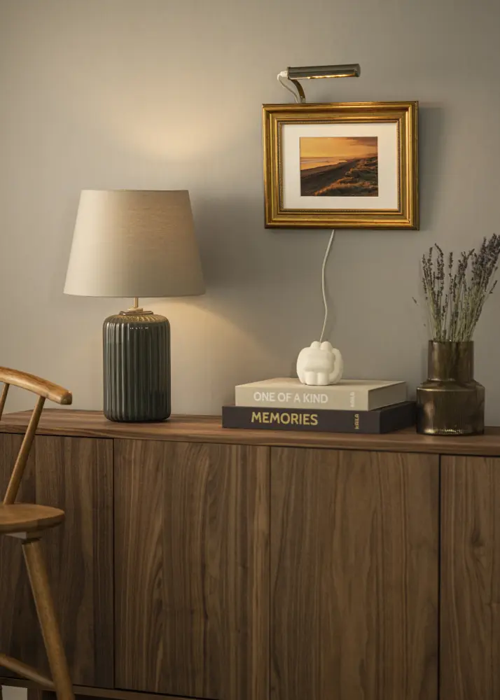 Art 1 é uma iluminação de quadros elegante tavelbelysning que é fabricada e desenhada na Suécia. É fácil dar destaque a uma pintura de que gosta muito. Dê um pouco de atenção extra à sua imagem favorita!