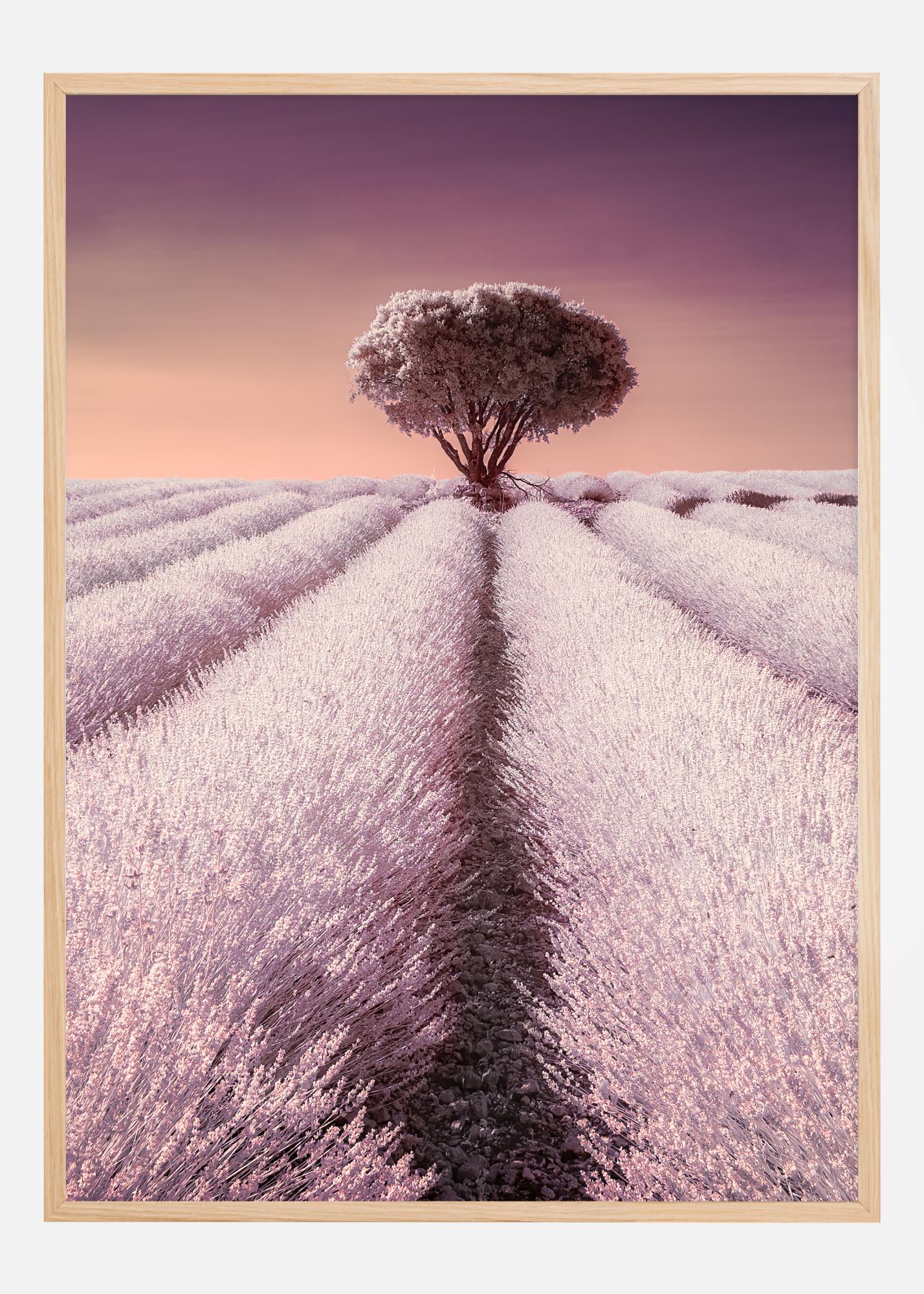 Entre em um mundo de sonho de cor e fantasia com o nosso exclusivo poster. Esta impressão emana uma sensação mágica com seu céu de tons pastéis que transita de um rosa quente para nuances calmas de lilás. O motivo destaca uma árvore solitária, majestosamente centrada ao longo da linha pura do caminho em um campo de lavanda. Este poster é uma festa visual para os olhos e seria perfeito como uma imagem central em qualquer ambiente, adicionando um toque de tranquilidade e beleza.