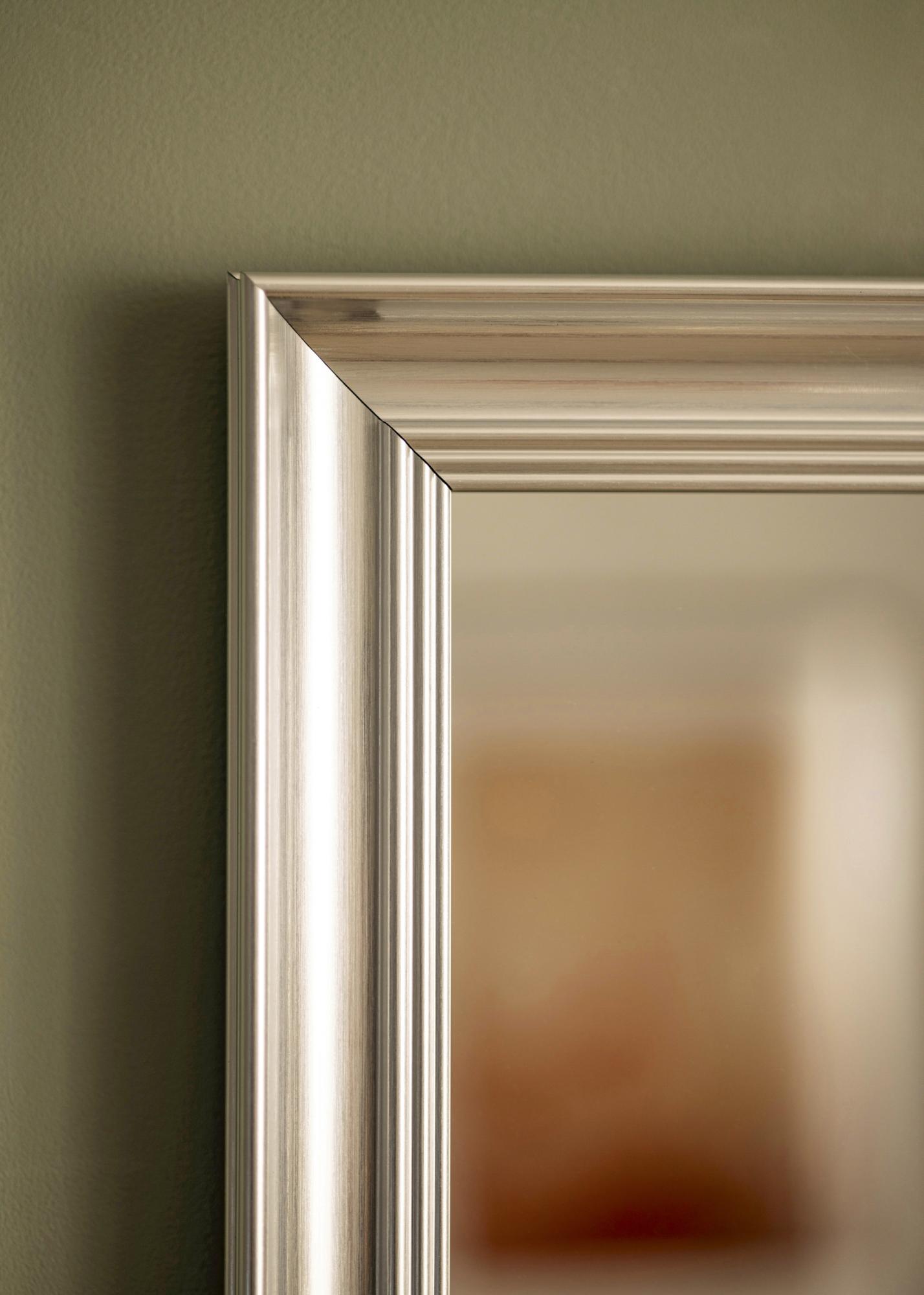 Iniciar o seletor de molduras »Alice Prateado é um espelho cuja moldura tem um design clássico e simples, com linhas retas, construído para destacar o motivo.
