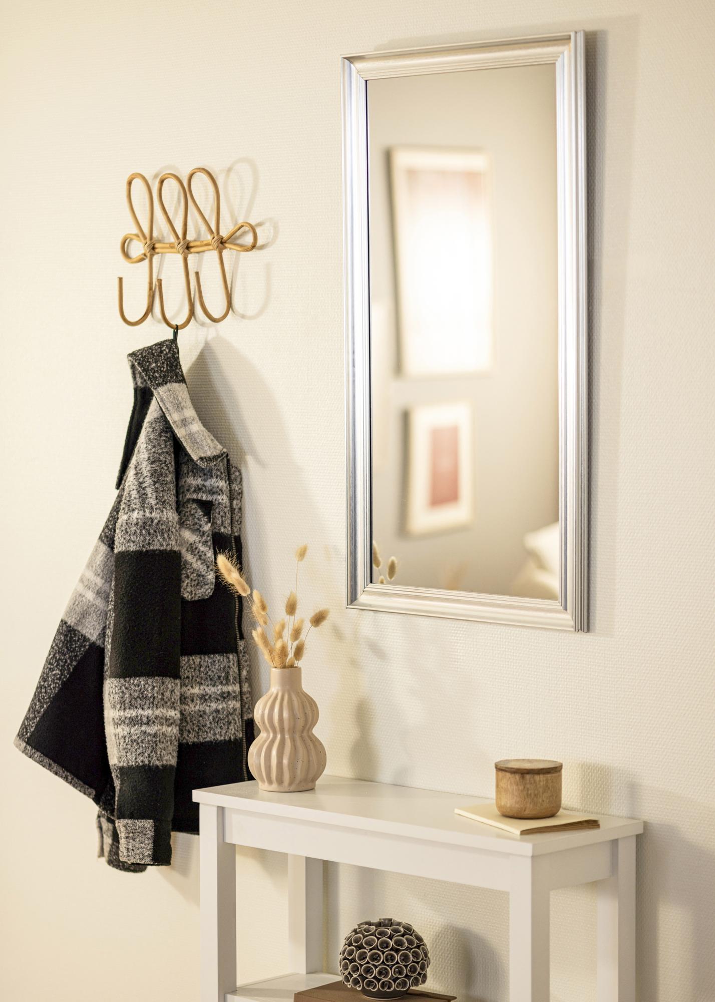 Sku :Alice Prateado é um espelho cuja moldura tem um design clássico e simples, com linhas retas, construído para destacar o motivo.