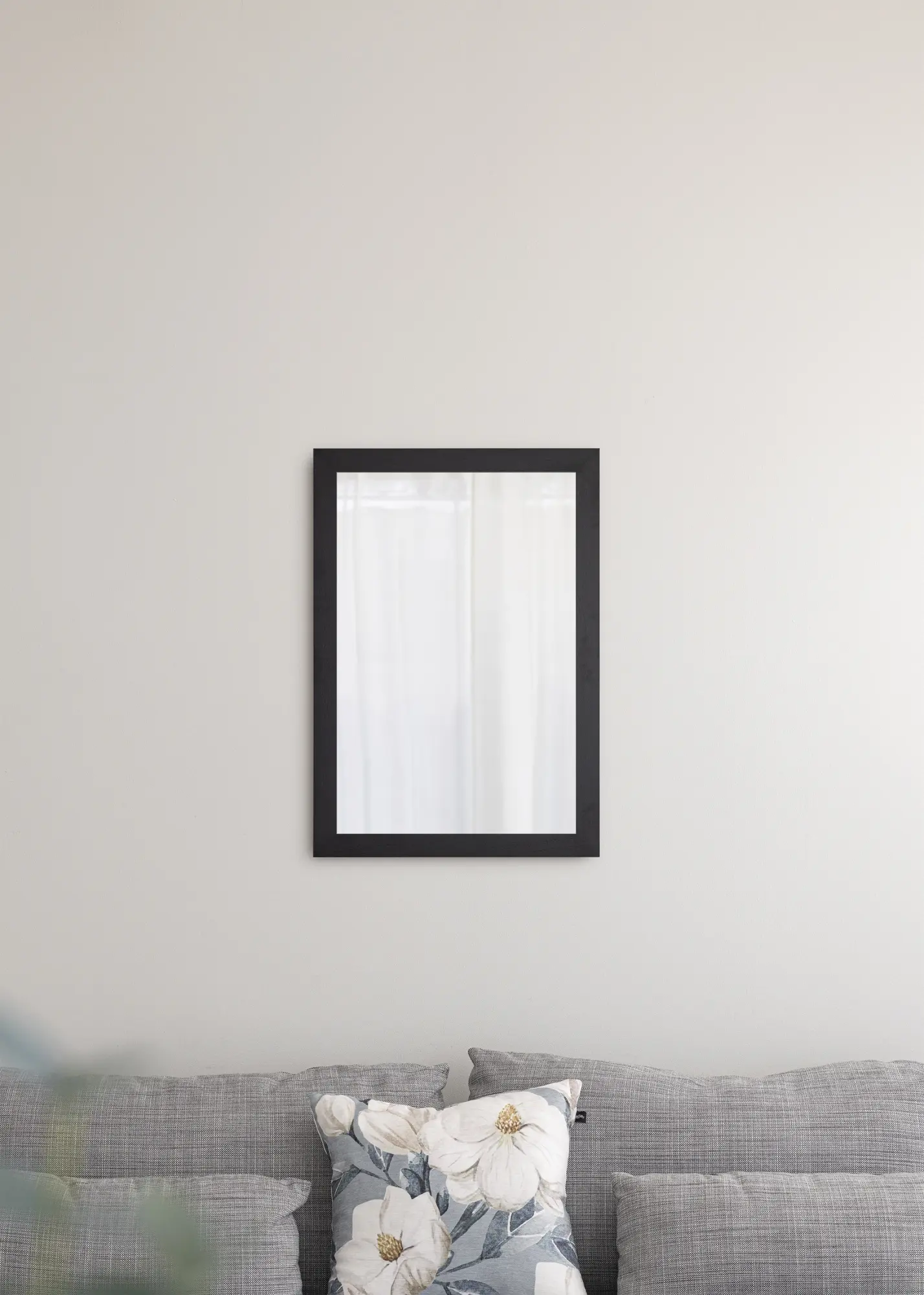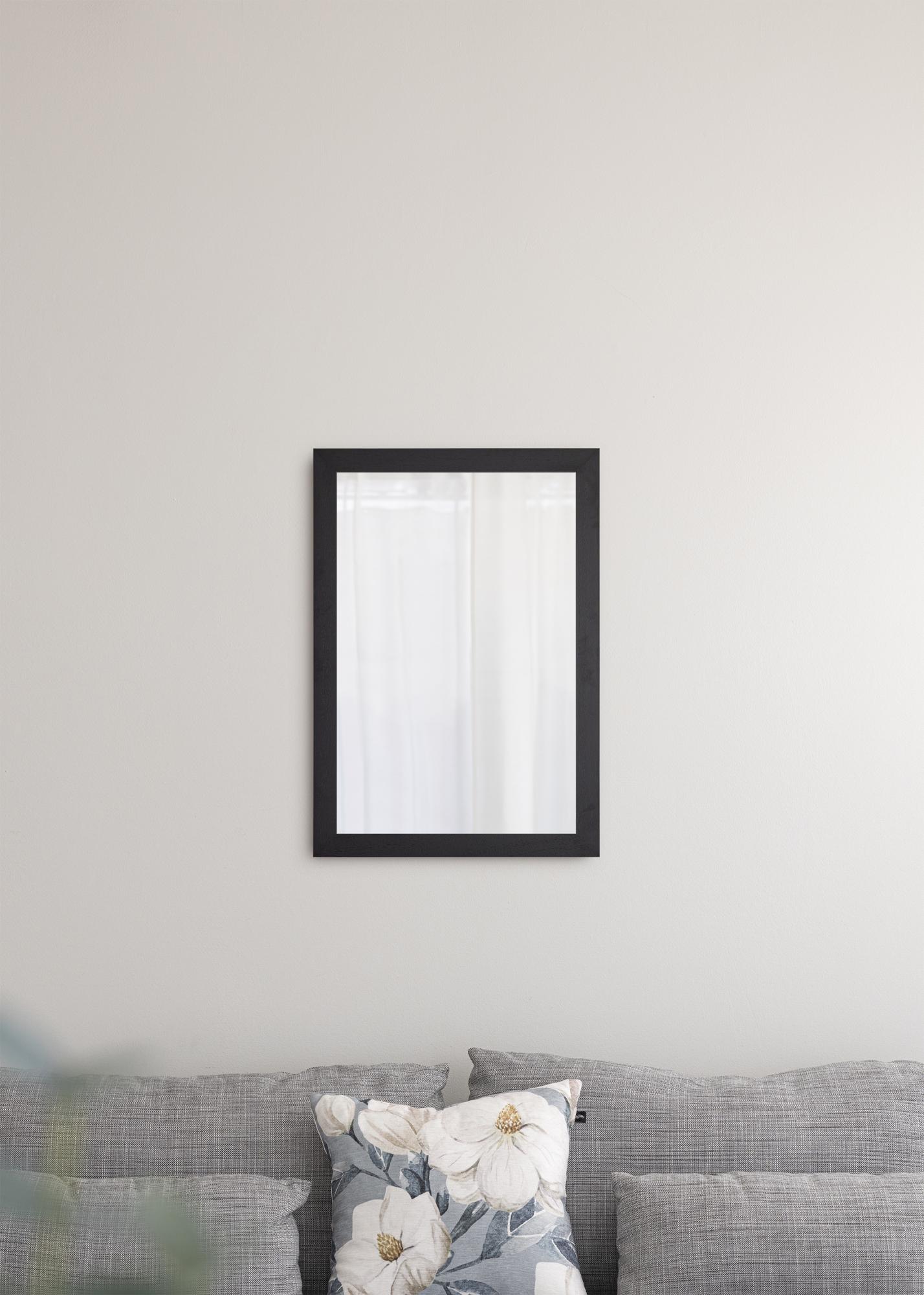 Este espelho de parede é um detalhe de decoração elegante e minimalista que se adequa perfeitamente a casas modernas e tradicionalmente decoradas. O espelho possui uma moldura de madeira pintada de preto, com 39 mm de largura, o que confere uma impressão moderna. Ao pendurar um espelho, pode fazer com que o ambiente em que ele é colocado pareça maior, ao mesmo tempo em que fica bonito na parede. Este espelho faz parte de uma série de espelhos de parede em diferentes tamanhos, sendo este de 47x67 cm.