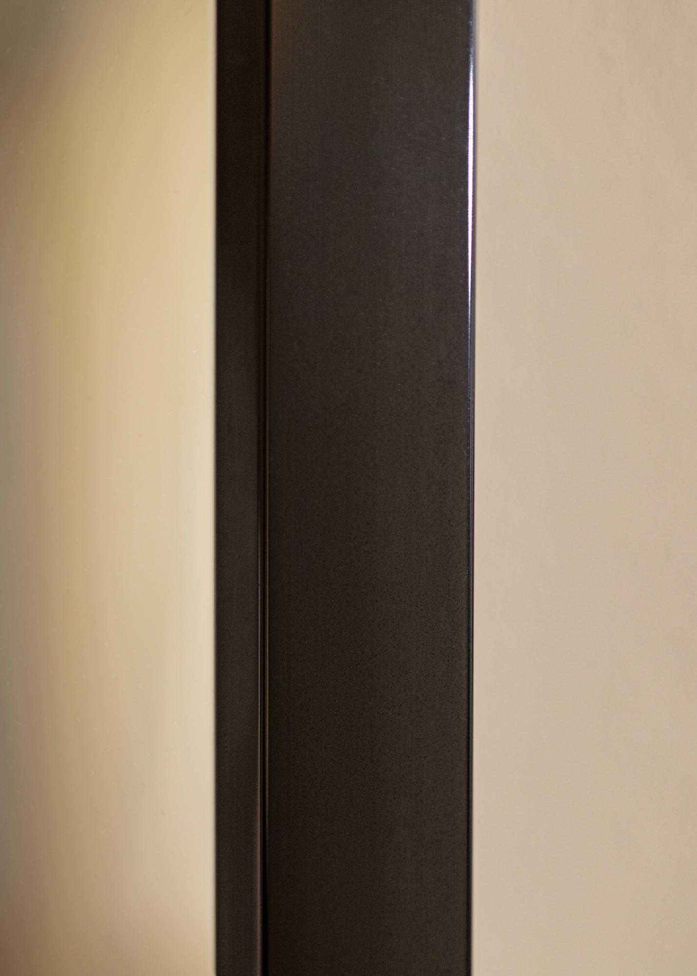 Estilo elegante espelho de alto brilho preto, com uma moldura feita de alumínio que tem um bisel interno. A sensação masculina do espelho gráfico pode proporcionar um contraste emocionante para um interior mais suave, mas o acabamento brilhante também faz com que o espelho se encaixe bem em decorações industriais modernas. Pendure o espelho junto com pósteres gráficos ou quadros com molduras pretas. Ao colocá-lo em frente a uma janela, cria-se um espaço no ambiente.
