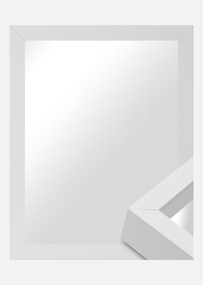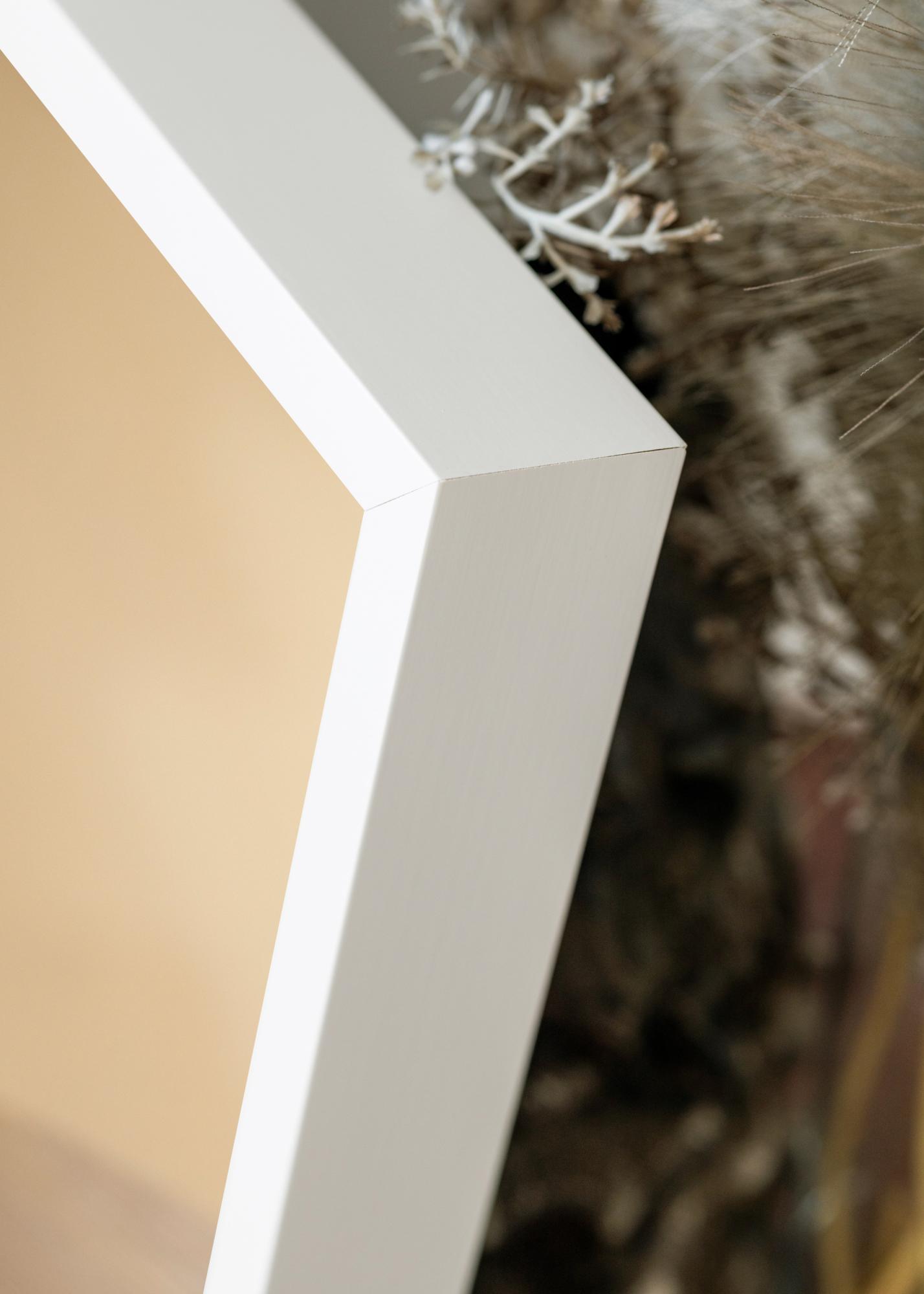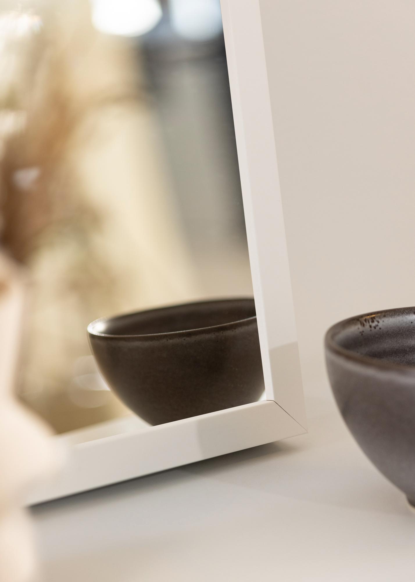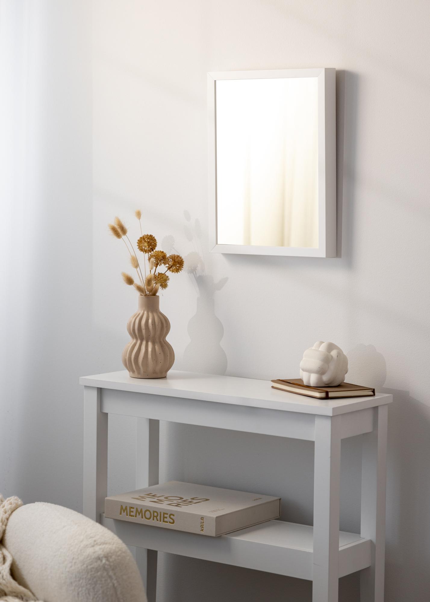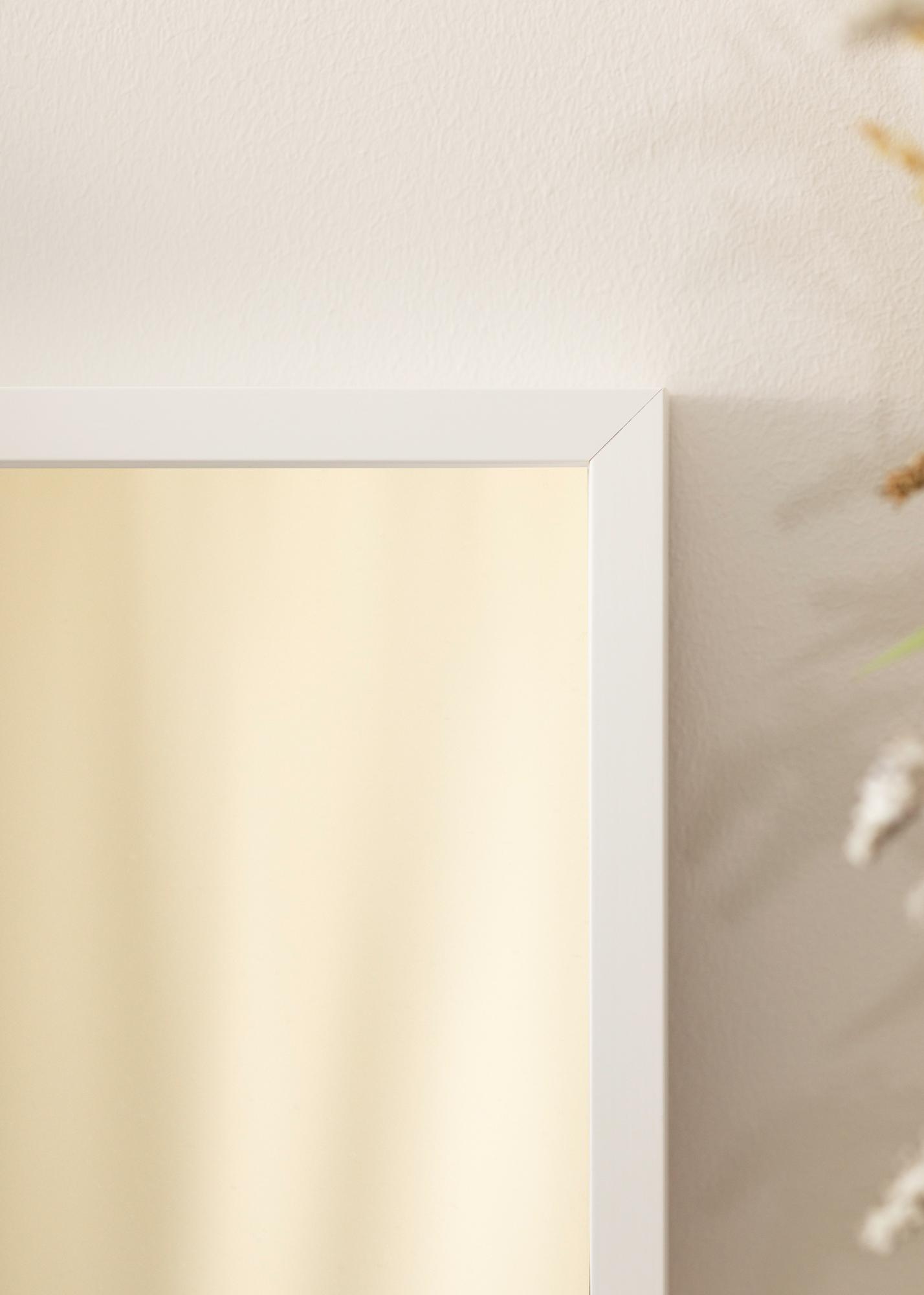 A moldura do Espelho Balder Branco tem 20 mm de largura e é feita de pinho, o que garante uma construção estável e durável. A profundidade do espelho é de 45 mm, o que faz com que ele pareça robusto sem ocupar muito espaço. A moldura estreita contribui para um design minimalista que permite que o vidro do espelho seja o foco principal.