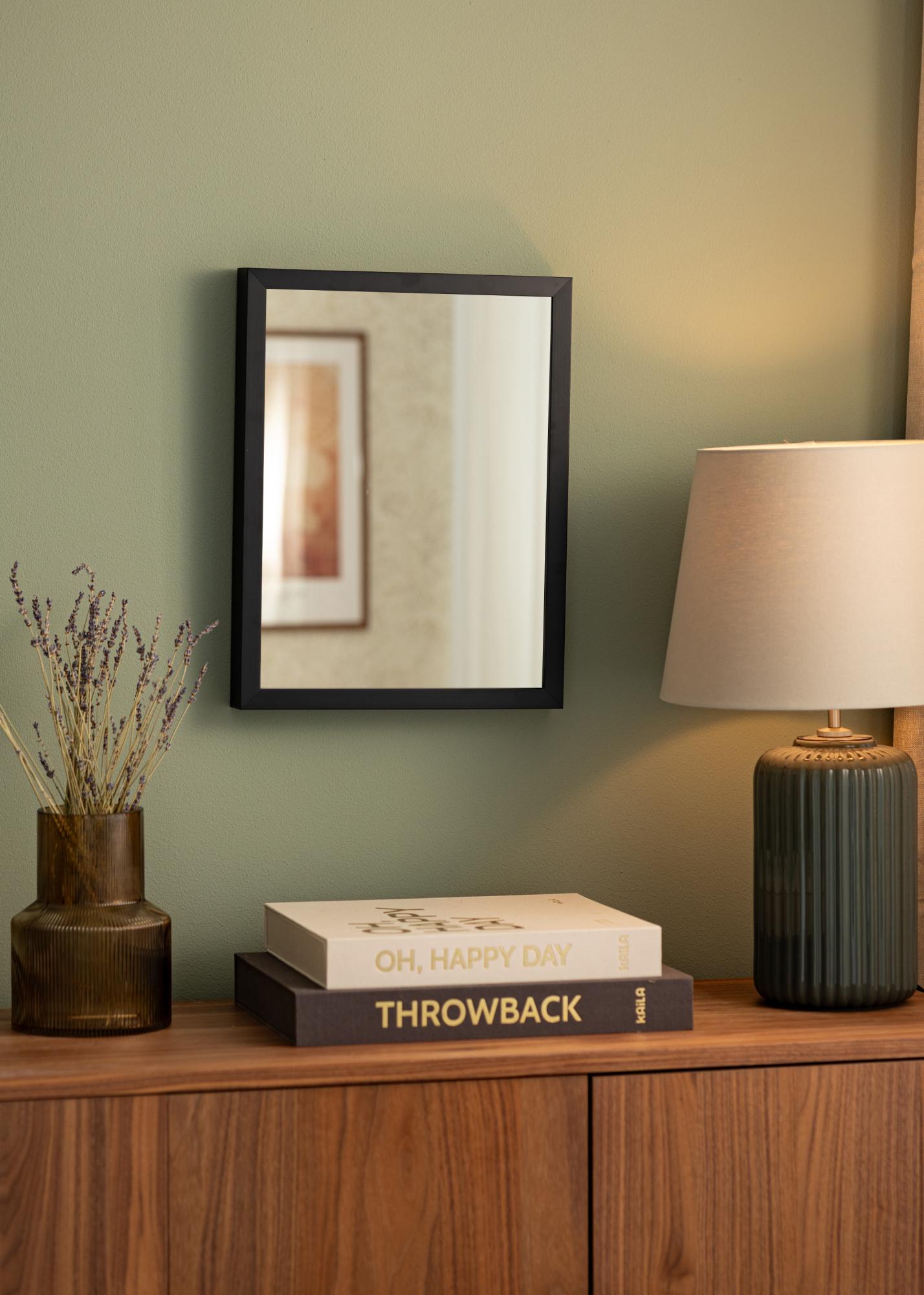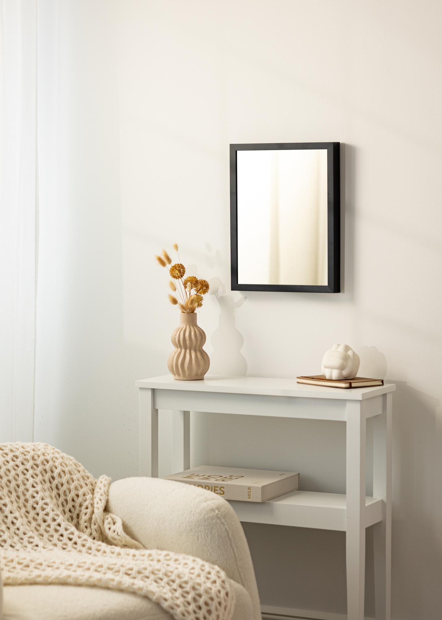 A moldura do Espelho Balder Preto tem 20 mm de largura e oferece ao espelho uma moldura discreta, mas ainda assim marcante. A profundidade de 45 mm proporciona ao espelho uma sensação estável e robusta, fazendo com que ele não só pareça bom, mas também sólido. A moldura é feita de pinho, um material durável que contribui para a sensação de qualidade do espelho.