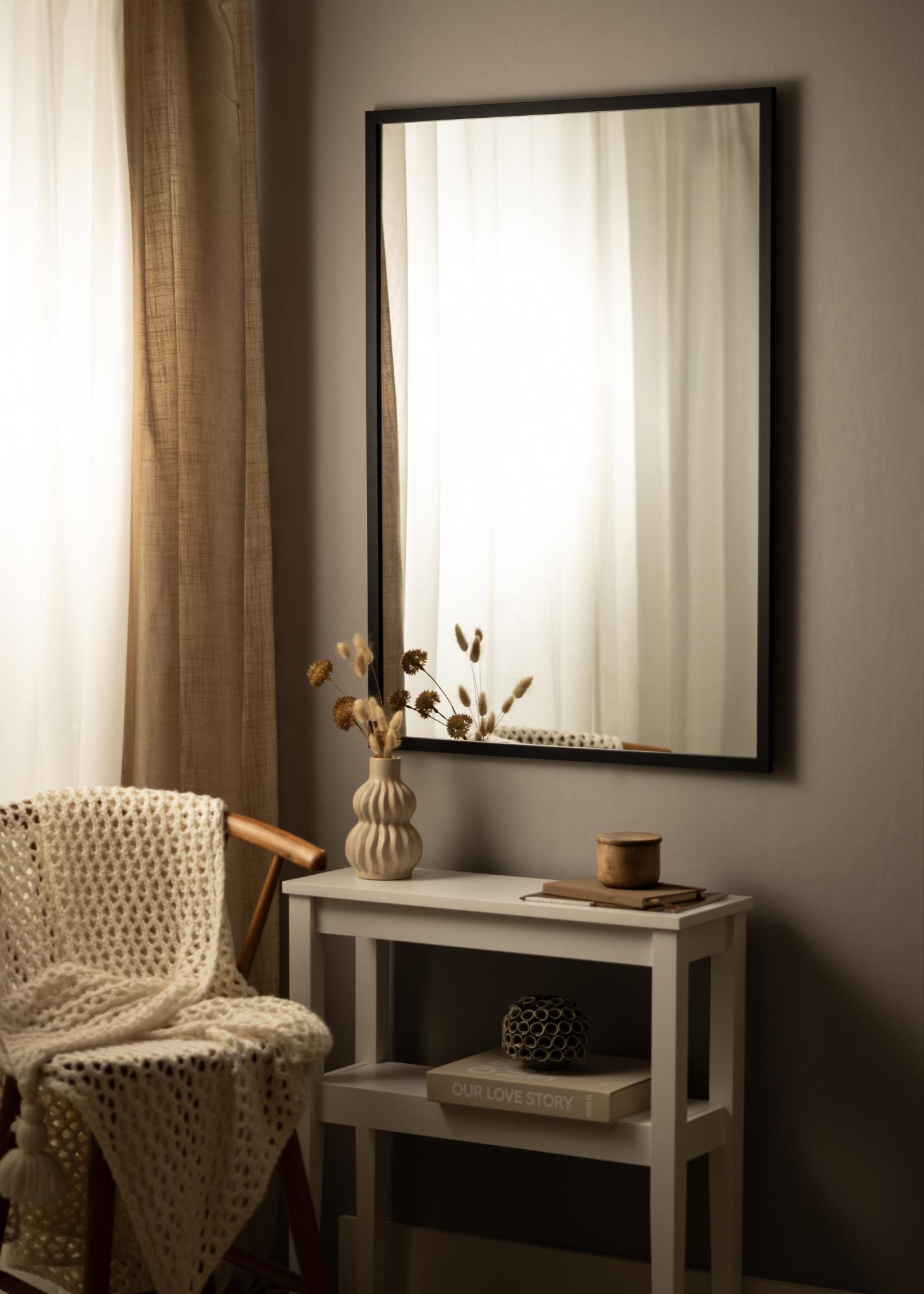 Black Wood é uma excelente escolha para quem procura um espelho de parede elegante com uma moldura preta simples. O espelho é feito de madeira pintada de ayo e possui vidro espelhado incolor. A moldura de 22 mm de largura tem um perfil quadrado tradicional que destaca a superfície do espelho.