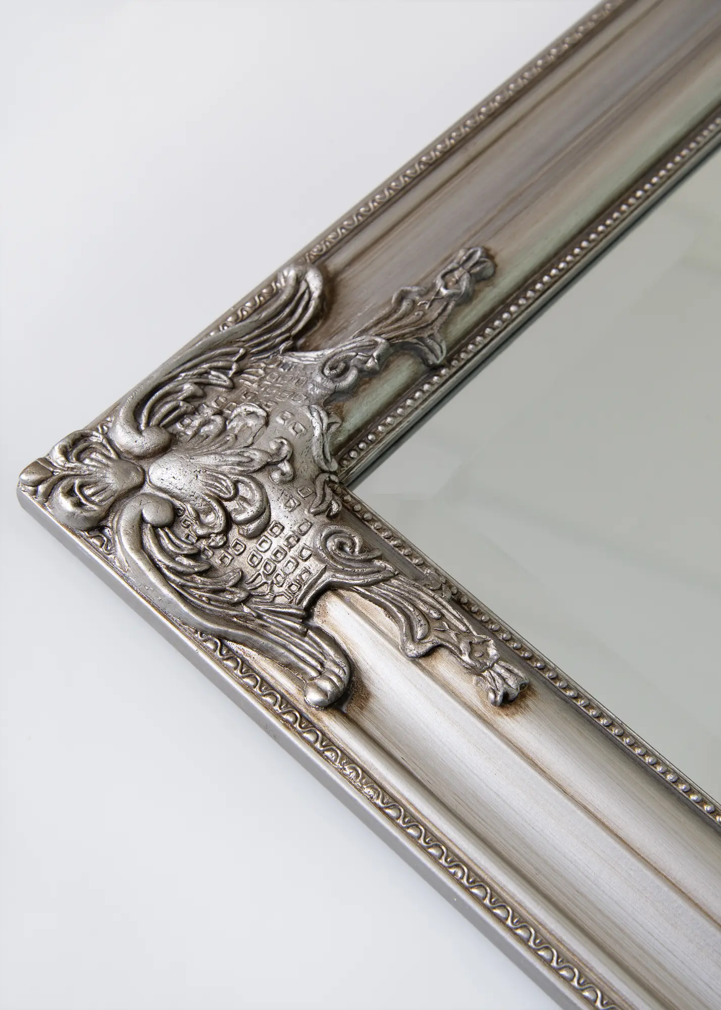 A série de espelhos Bologna Guld tem um design latino com decoração abundante nos cantos e nos pontos centrais das bordas. A moldura é um pouco mais estreita do que muitos outros espelhos neste estilo. A moldura é feita de madeira e a decoração é moldada em gesso antes de ser aplicada na moldura. Perfeito para ser usado como espelho de casa de banho.