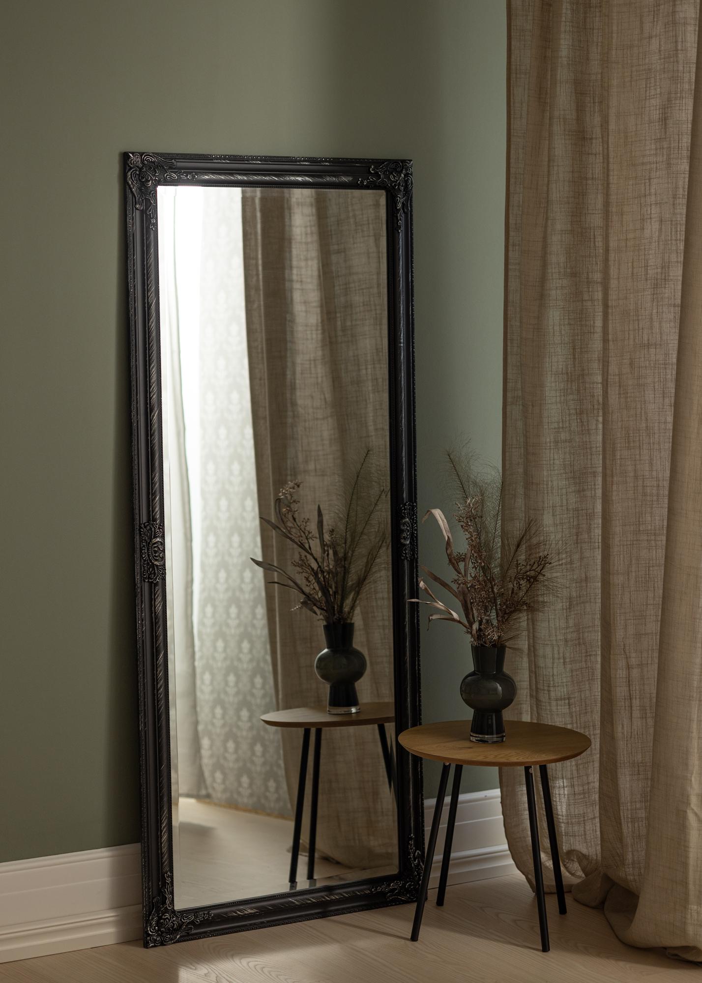 Descubra o design elegante e sofisticado de nosso espelho vertical, perfeitamente dimensionado para 70x160 cm para fornecer um reflexo completo. Este espelho apresenta uma forma vertical, retangular que complementa tanto estilos de decoração modernos quanto tradicionais. A moldura preta é cuidadosamente trabalhada com um design detalhado que adiciona um toque de luxo a qualquer ambiente.